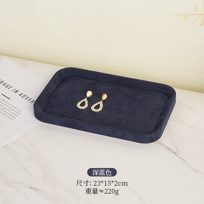 Specifications and models: Dark blue rectangular small size; microfiber jewelry tray