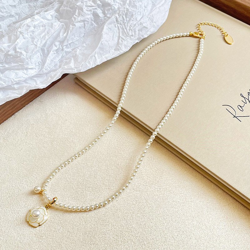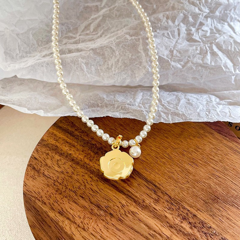 Color: [0.3cm imitation pearl chain + copper plated 18k real gold pendant]: nl04696n