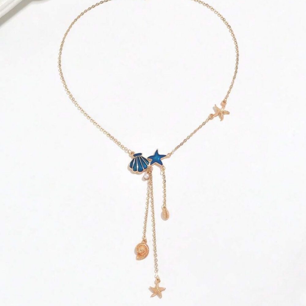 【品名】1件全新创意海洋风格海星与贝壳吊坠项链简约个性化时尚日常爆款