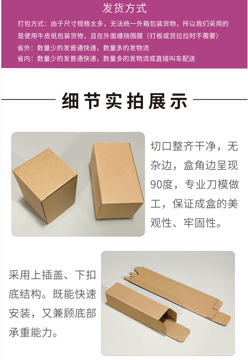 Specifications and models: Three-layer kraft corrugated box; 100*100mm; height 80mm