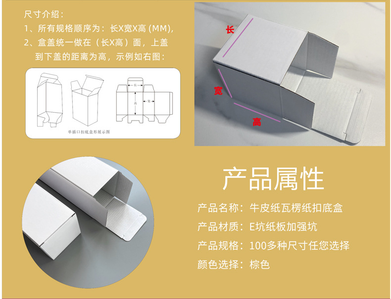 Specifications and models: Three-layer kraft corrugated box; 100*100mm; height 70mm