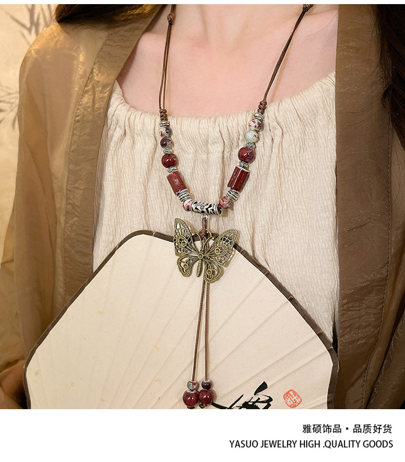 Color: Ceramic beaded copper butterfly necklace - about 102cm