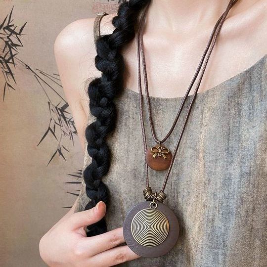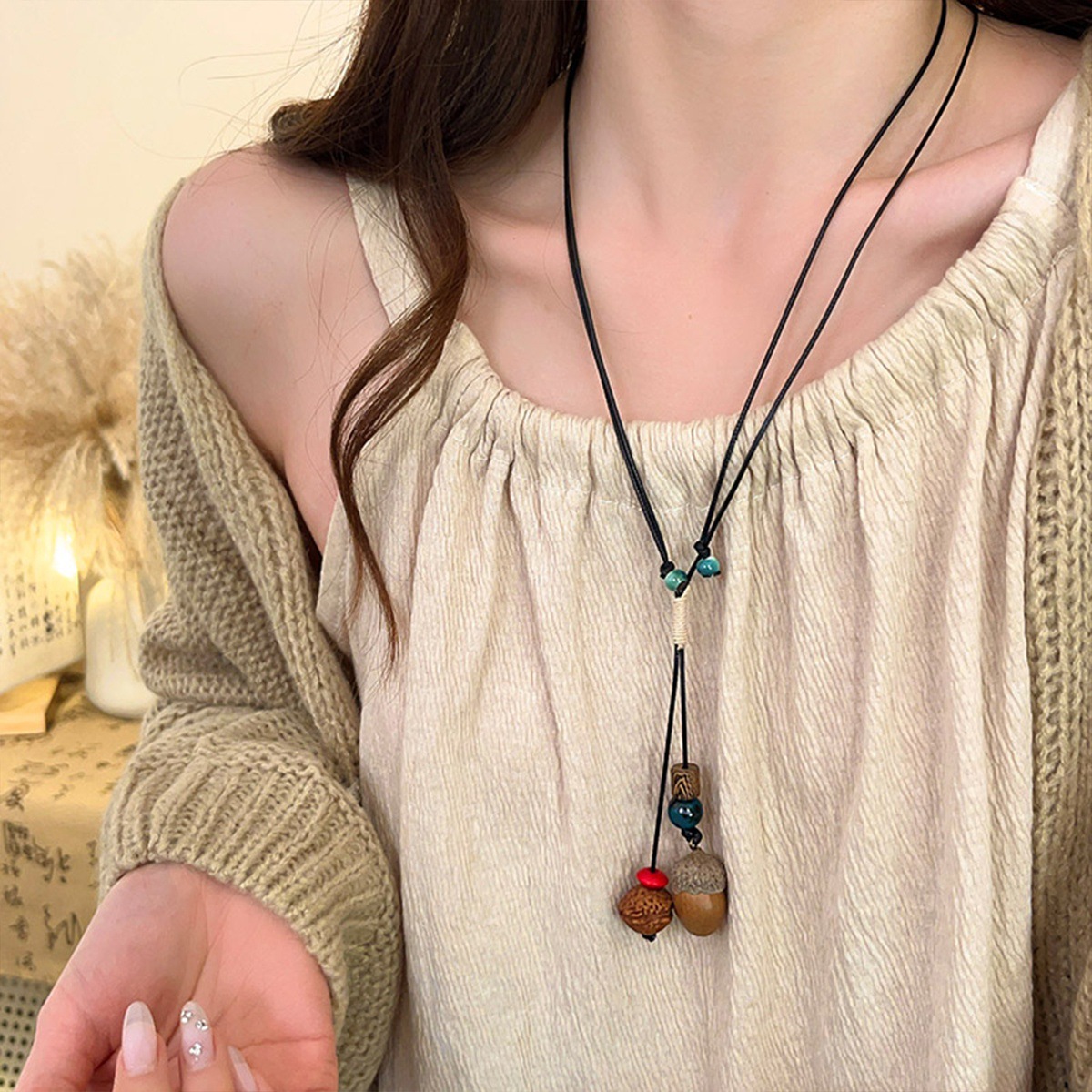 Color: Wooden acorn ceramic pendant necklace-132cm