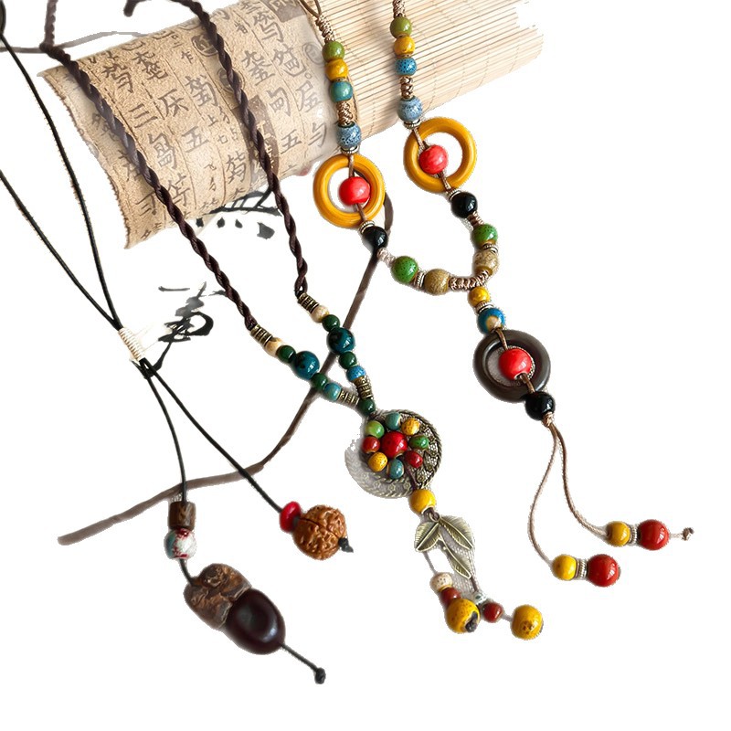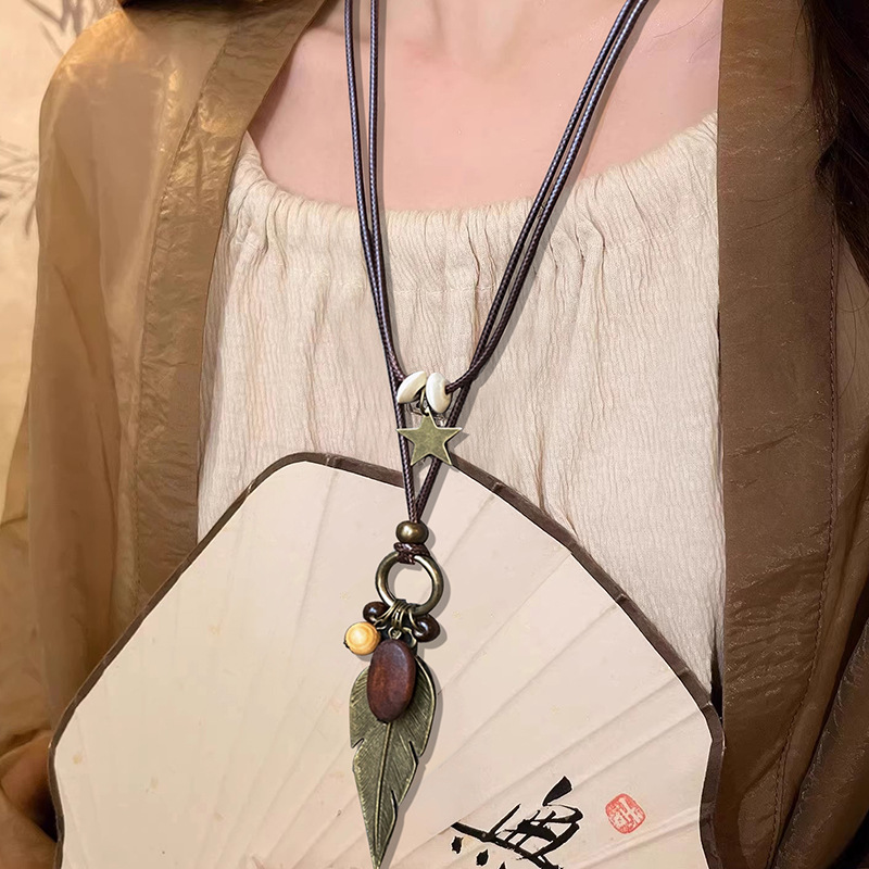 Color: Ceramic beaded leaf braided rope necklace - about 98cm