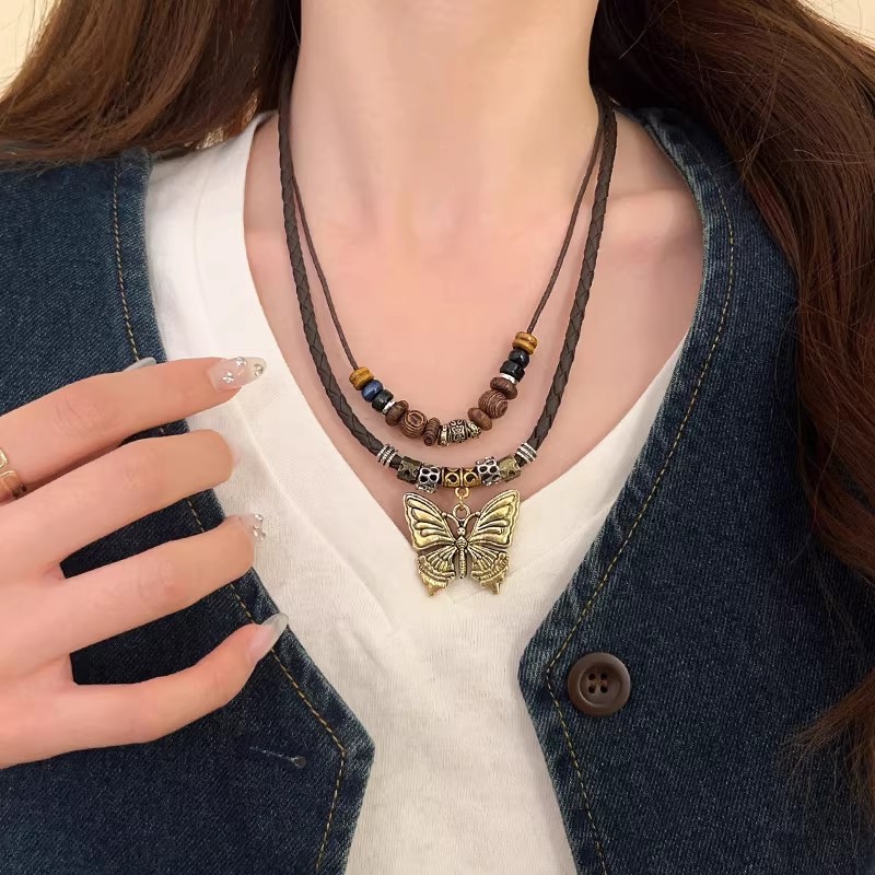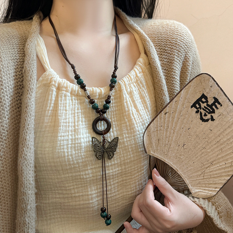 Color: Double braided rope butterfly sandalwood necklace-78cm