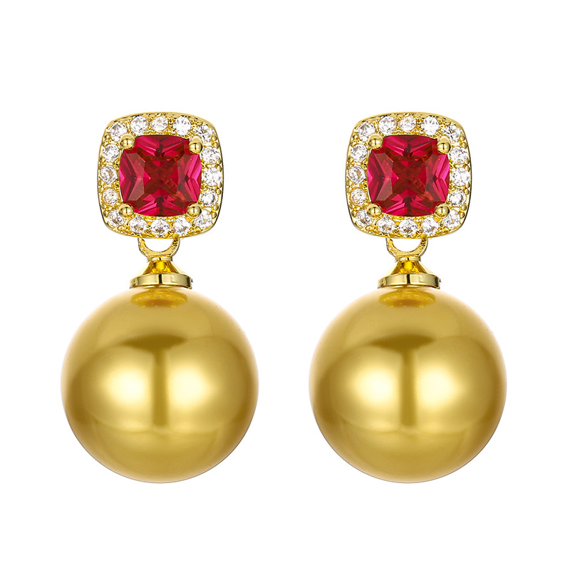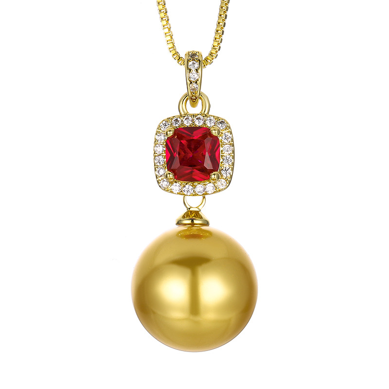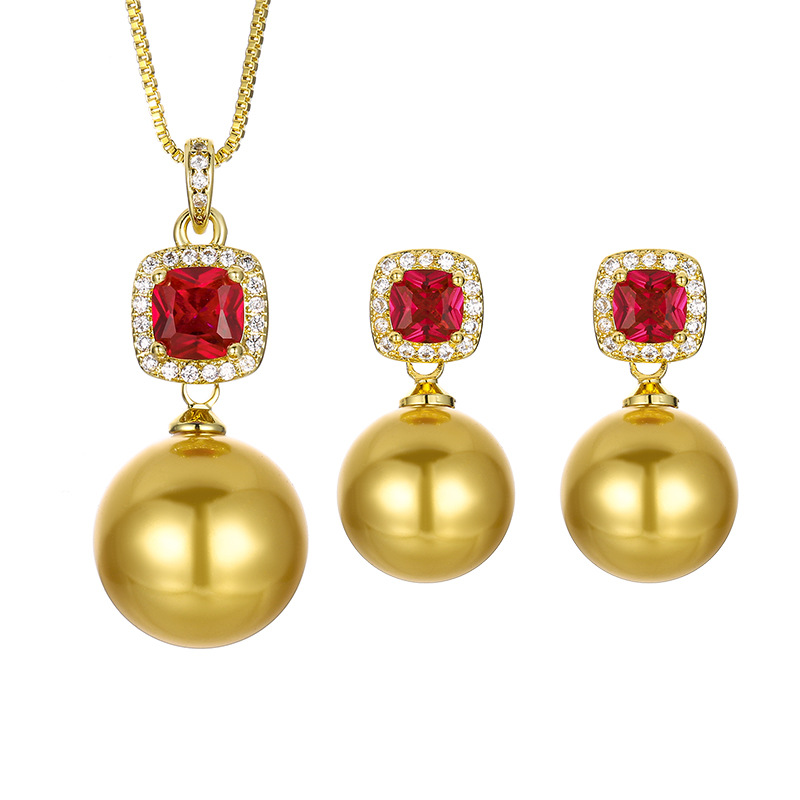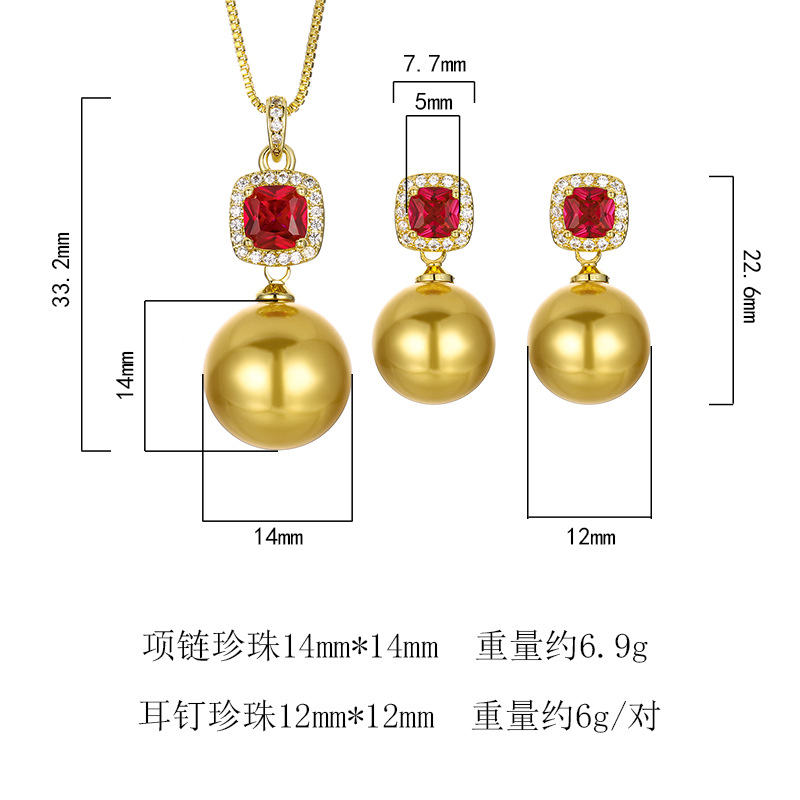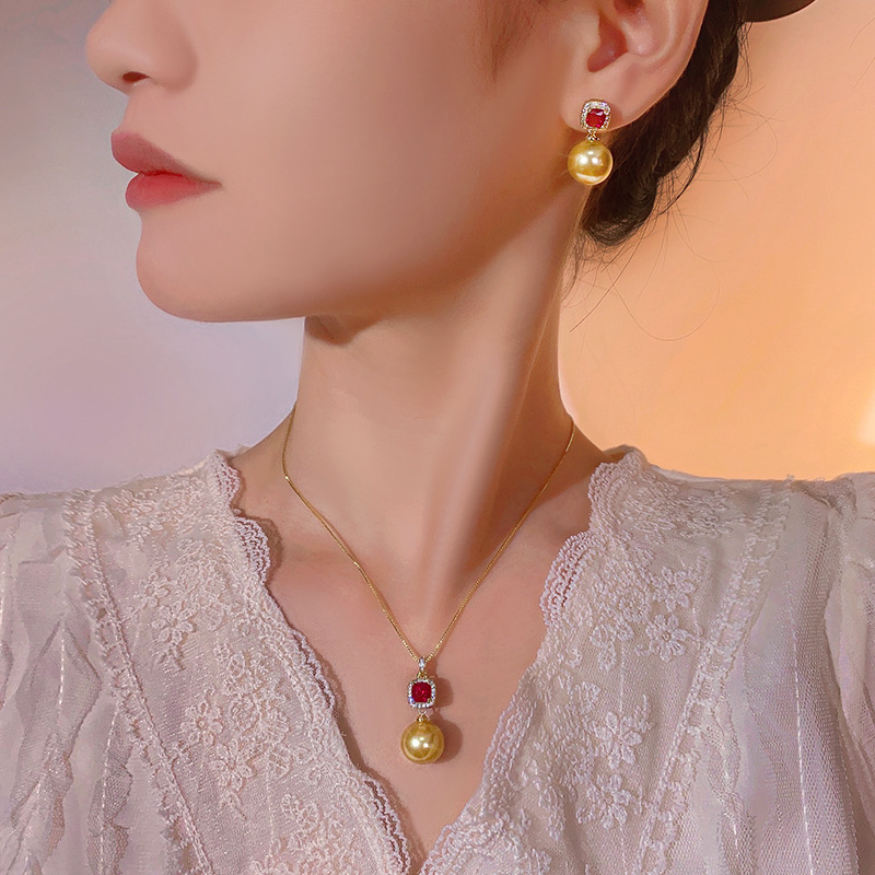 2025 New Zhuangshengsheng Jewelry Copper Base Gold-Plated Red Corundum Dark Gold Pearl High-End Set for Women 14-12m