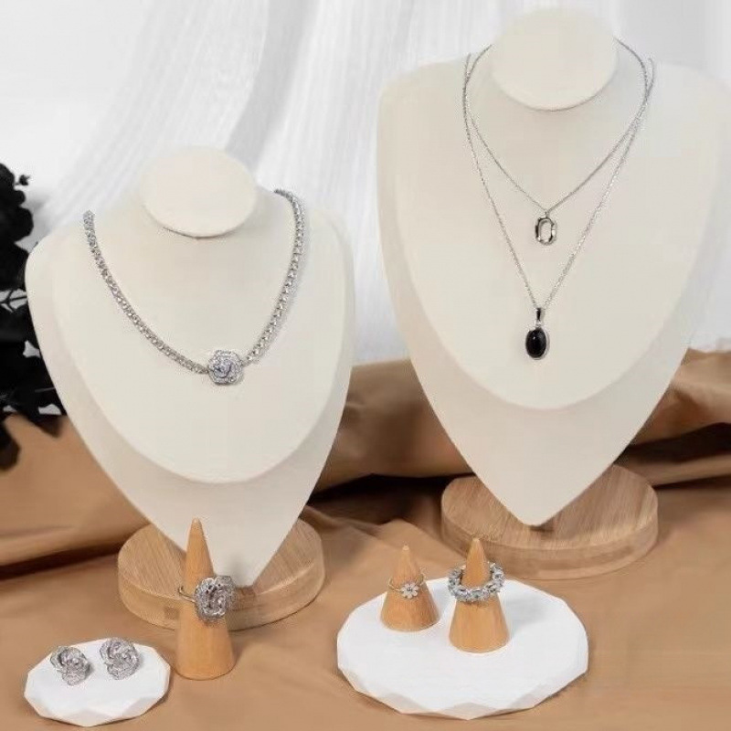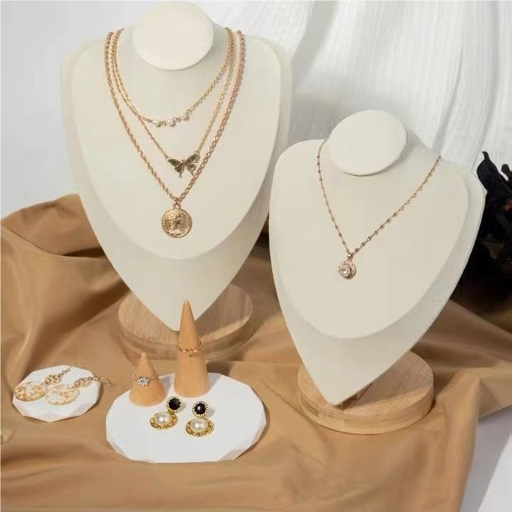 High-End Solid Wood Heart-Shaped Necklace Display Stand Neck Model Portrait Neck Jewelry Stand Jewelry Photo Props