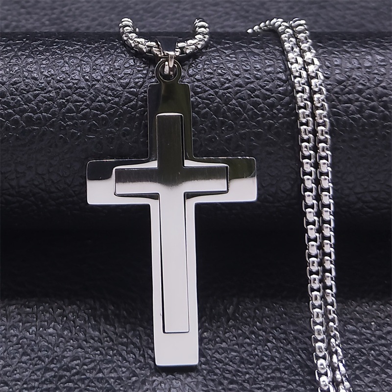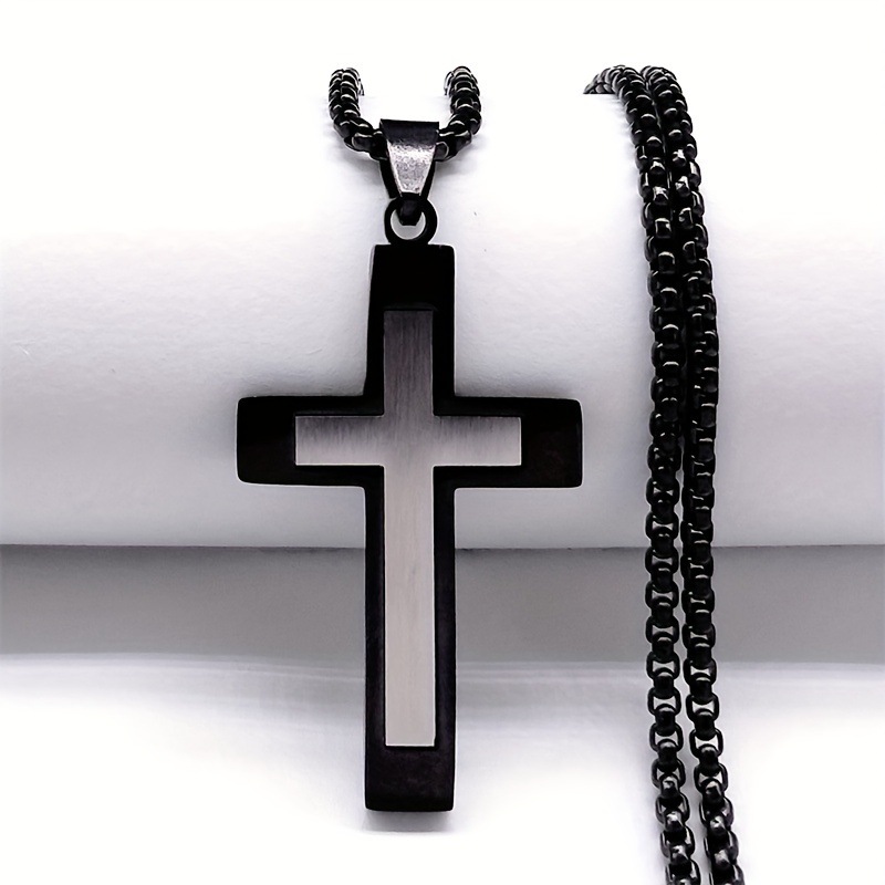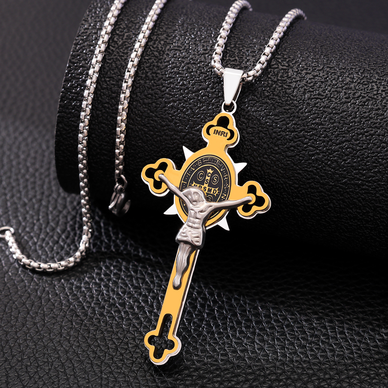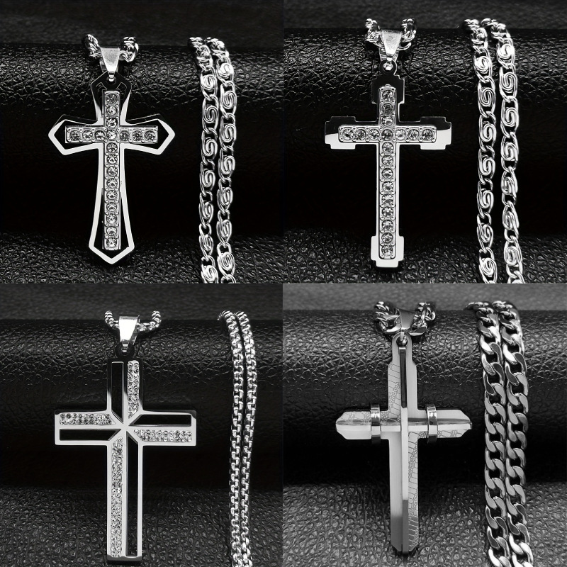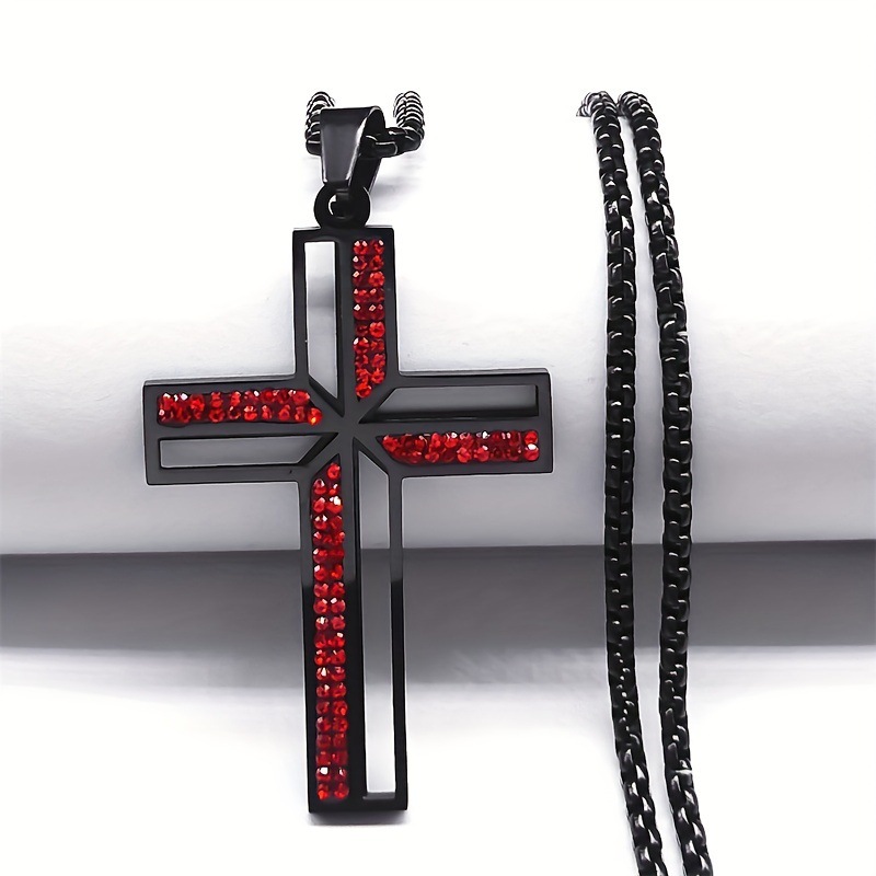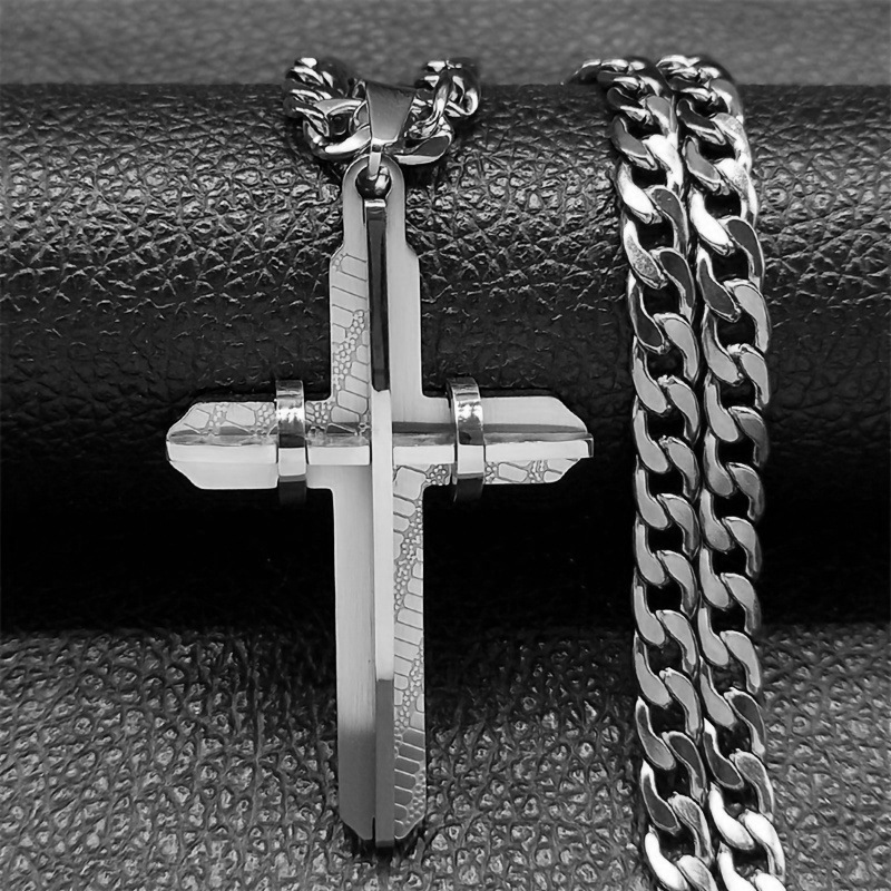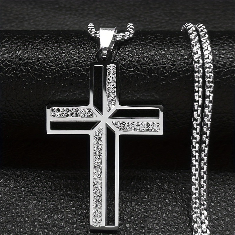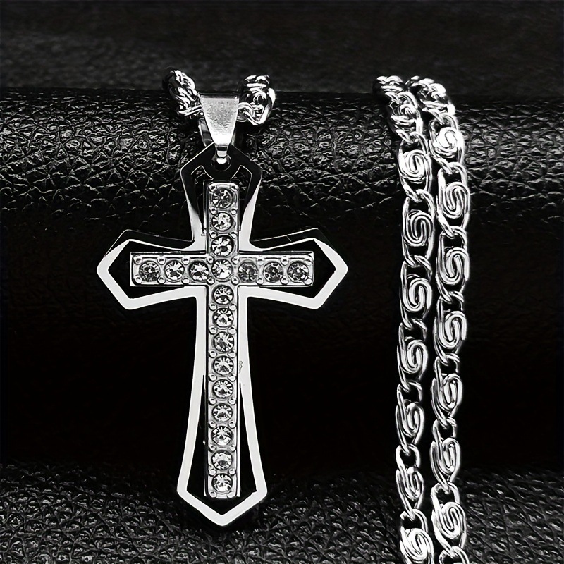 Cross-Border New Men's Stainless Steel Cross Necklace with Diamonds, Vacuum Electroplating, Non-Fading Hip-Hop Style Accessories Wholesale