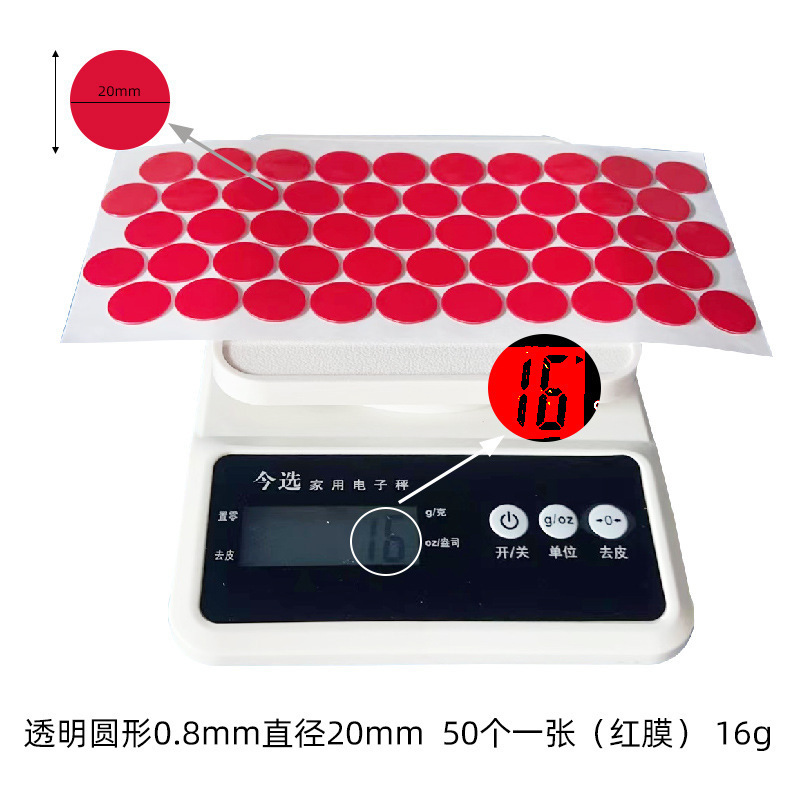 Specifications and models: White film; round 15mm, thickness 0.8mm, 30 pieces/sheet