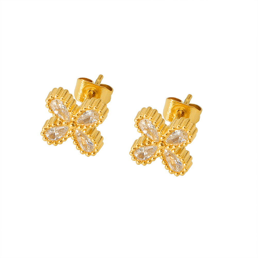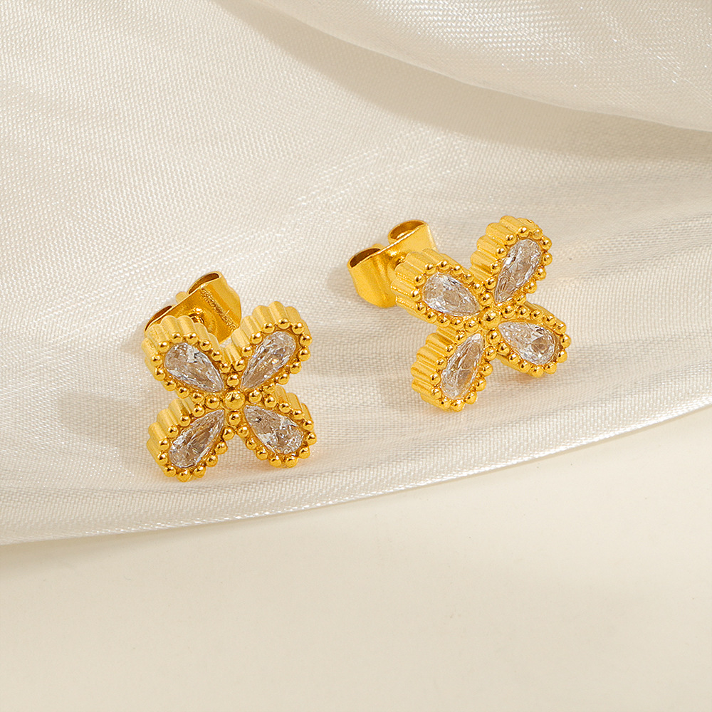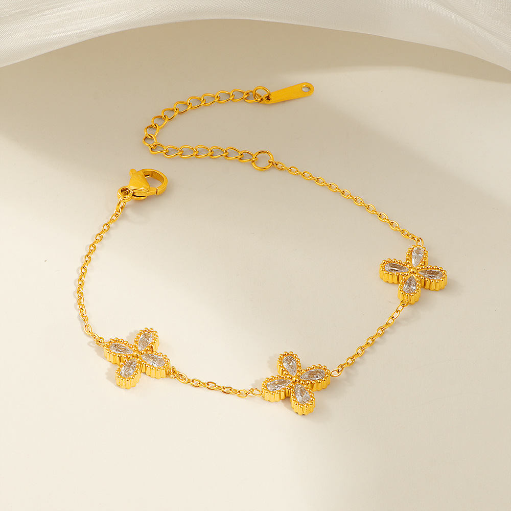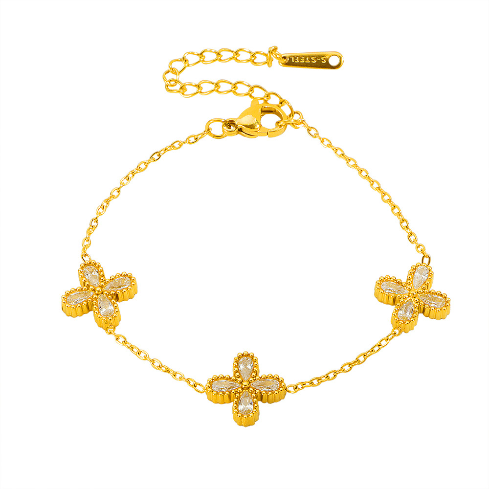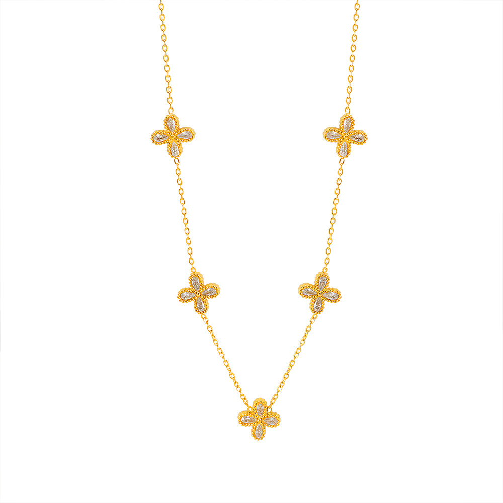 New Titanium Steel Four-Leaf Clover White Diamond Non-Fading Fresh and Sweet Flower Necklace Fashion Bracelet Jewelry Set Trend