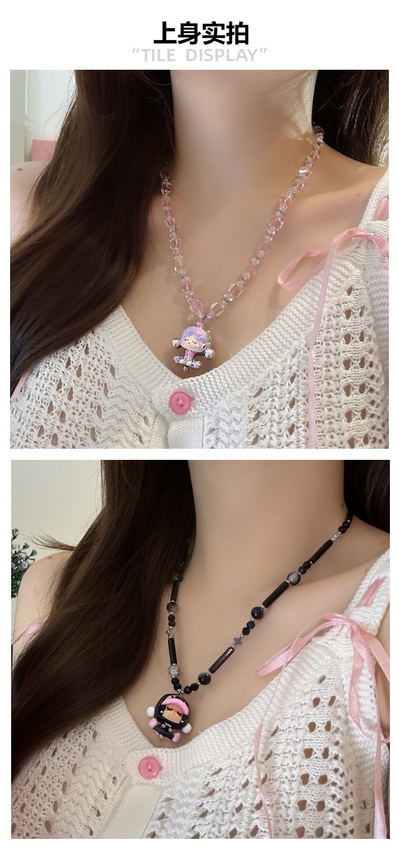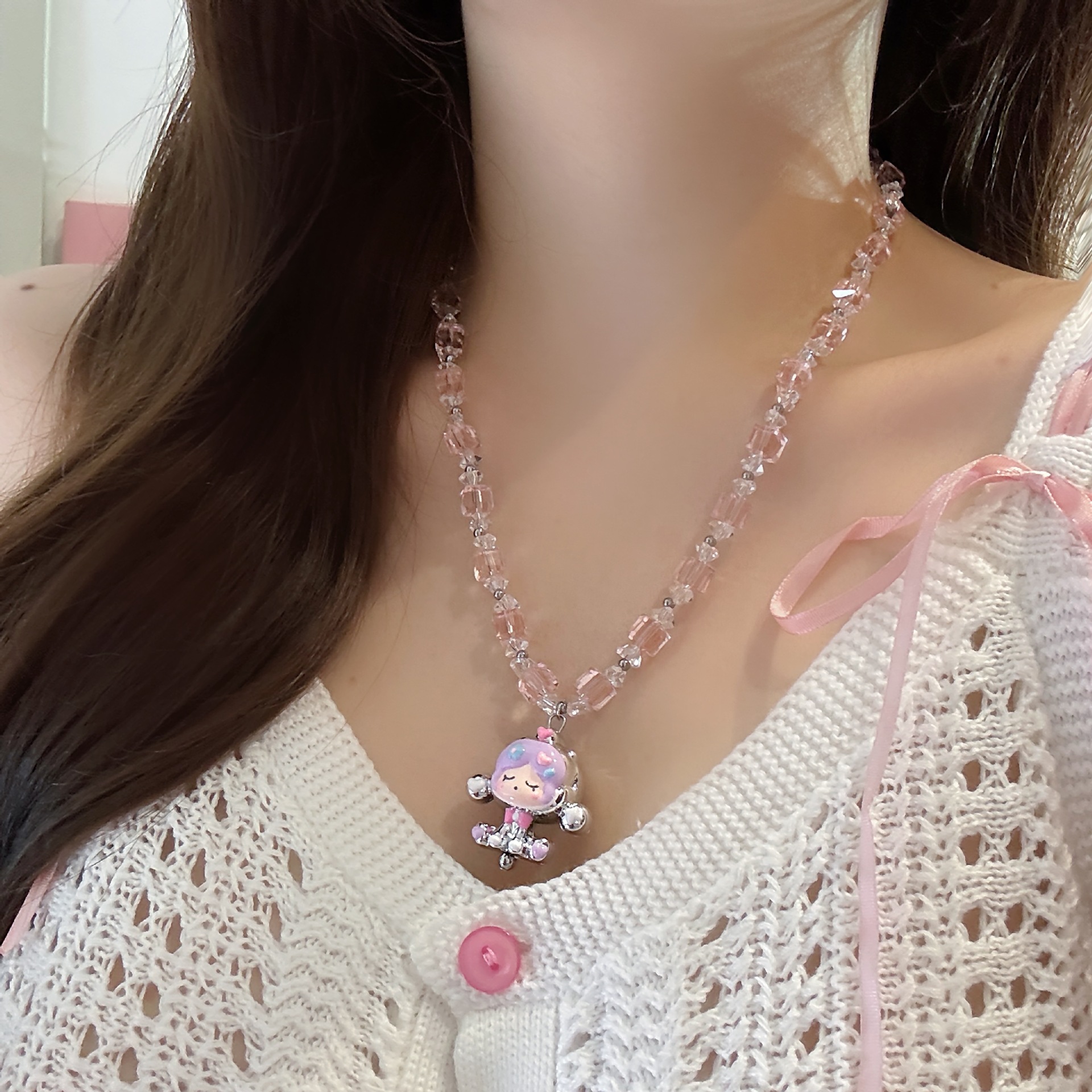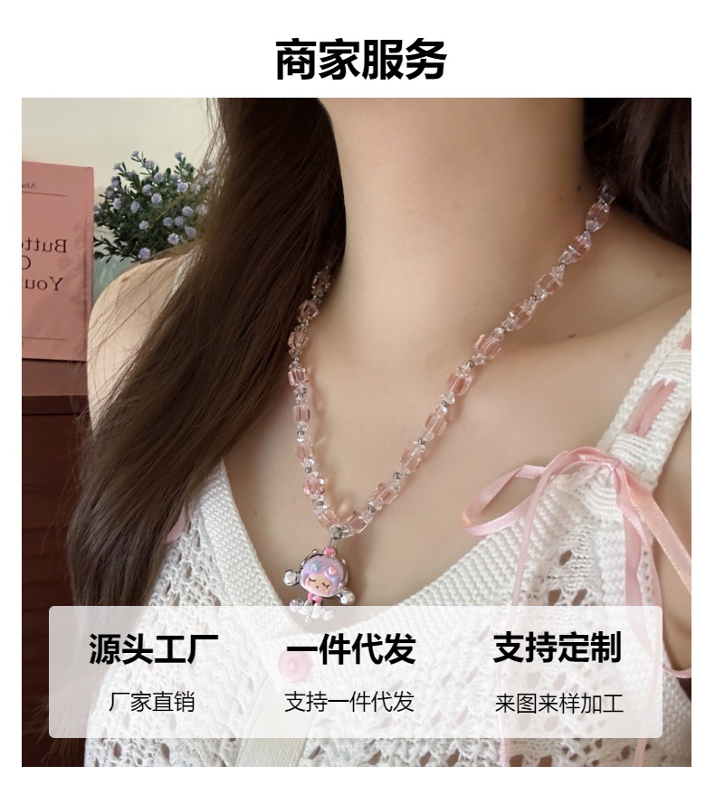 Color: Pink bubble mart cartoon necklace