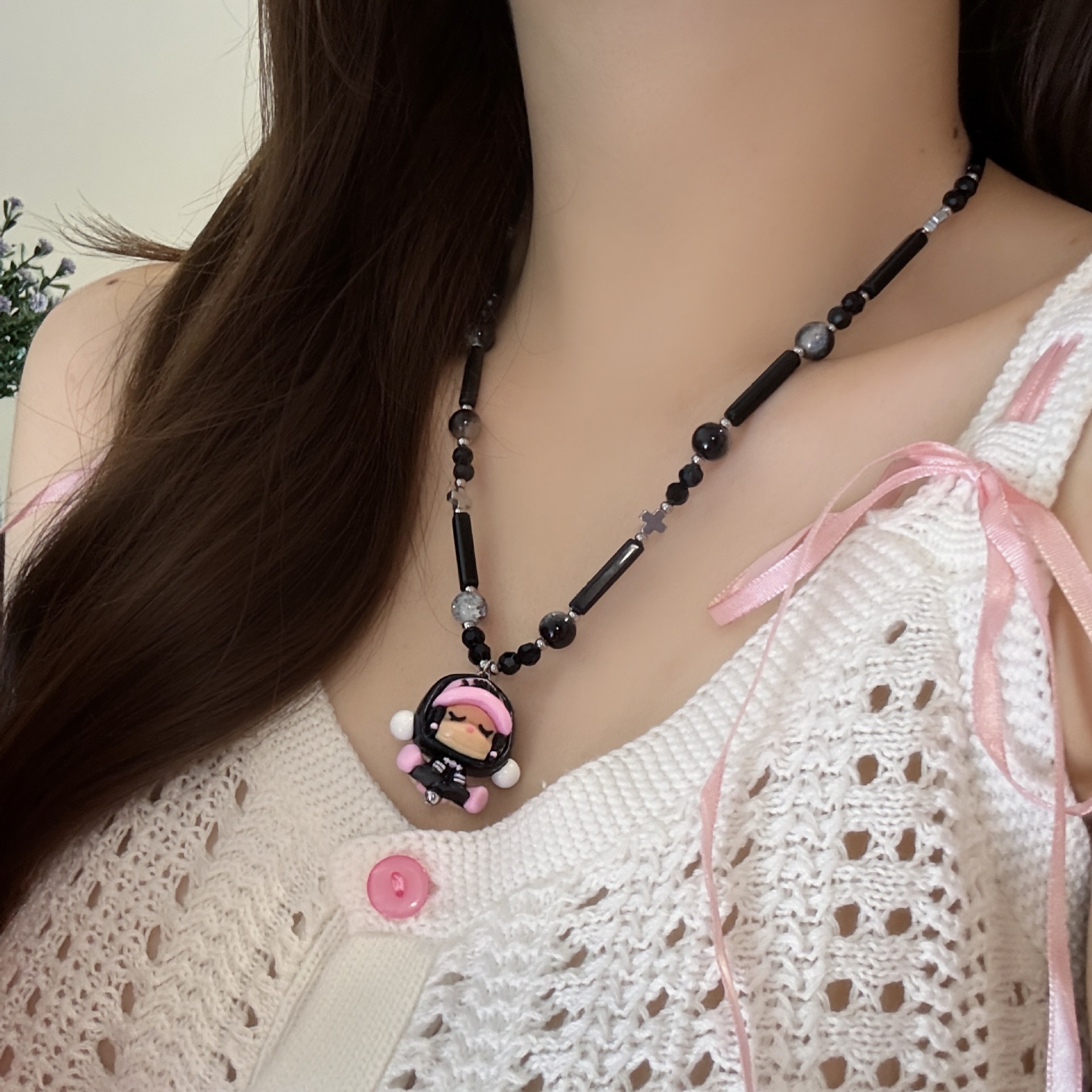 Black bubble mart cartoon necklace