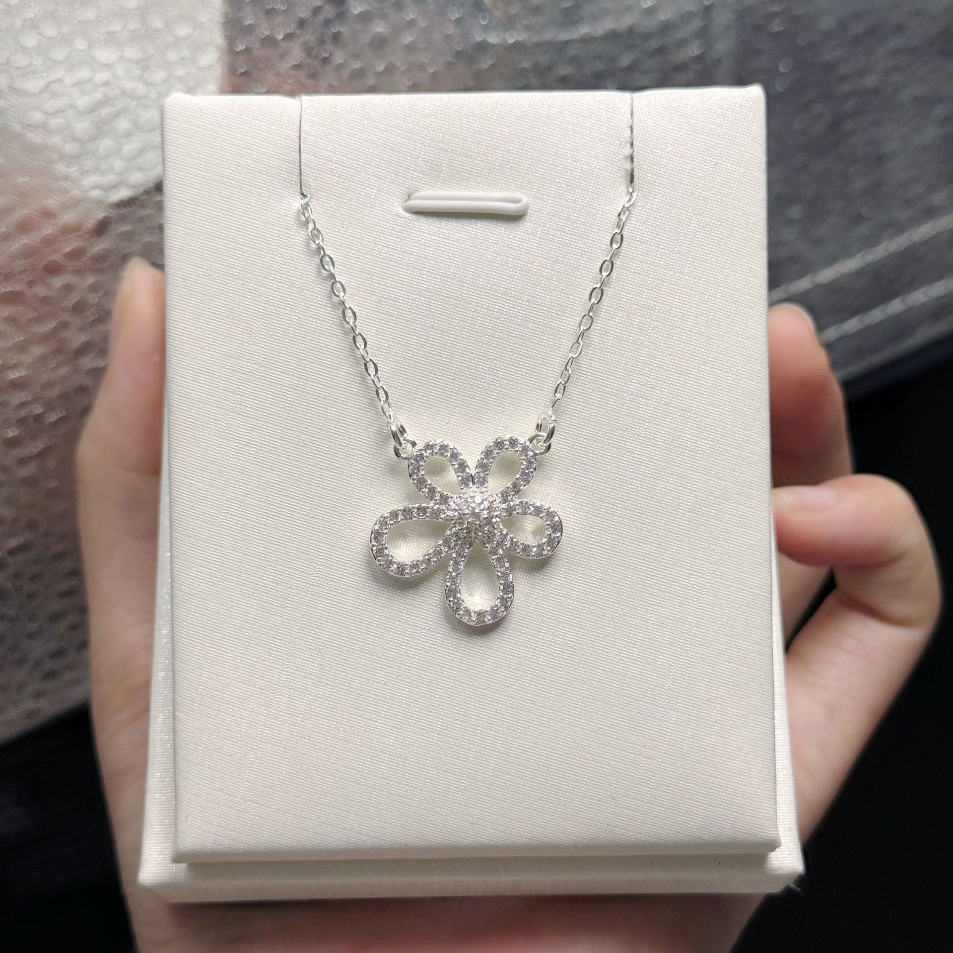 Korean-Style Ins Niche Design Silver-Plated Necklace with Micro-Inlaid Zircon, Sweet and Elegant, Light Luxury, Versatile Clavicle Chain