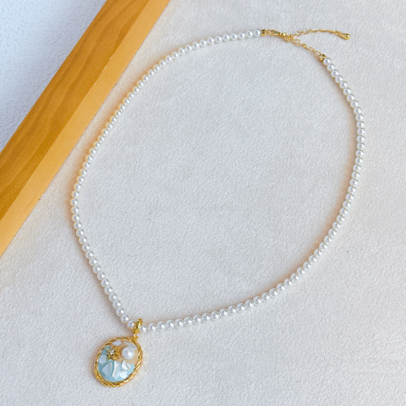 Color: [special round flawless glass pearl + solid copper plated 18k real gold pendant]: nl05368n
