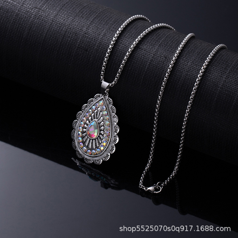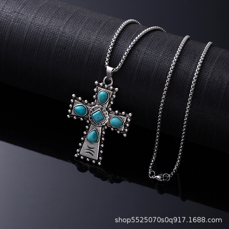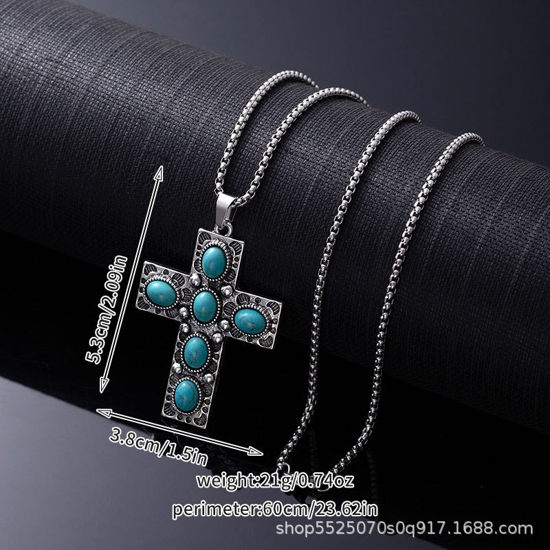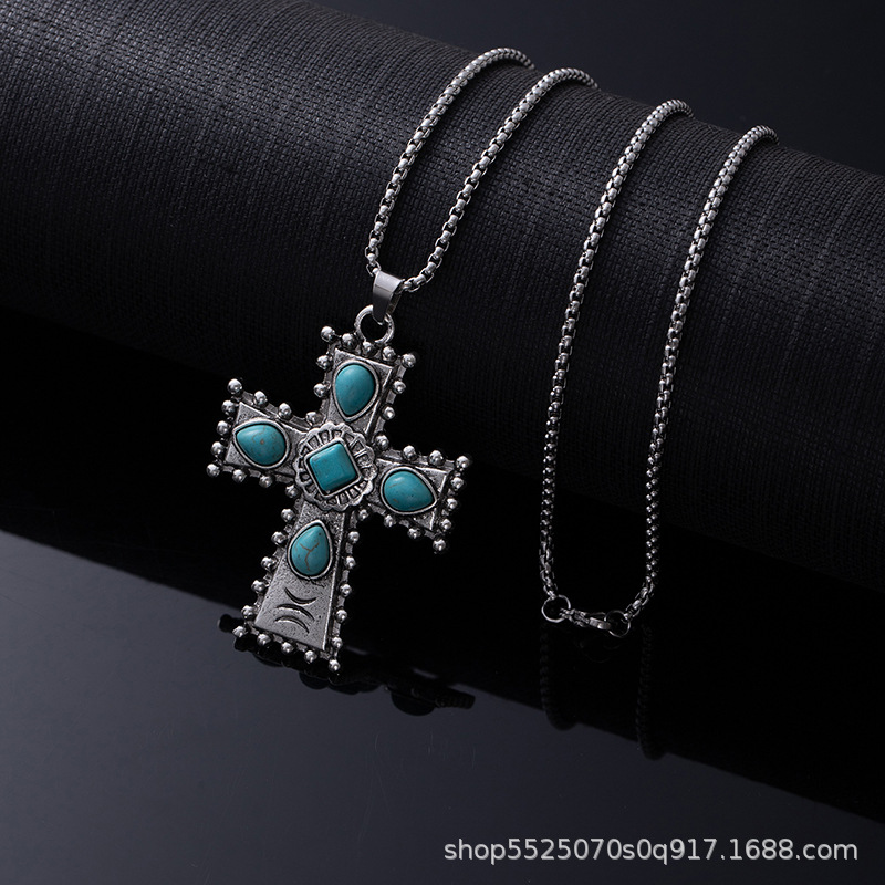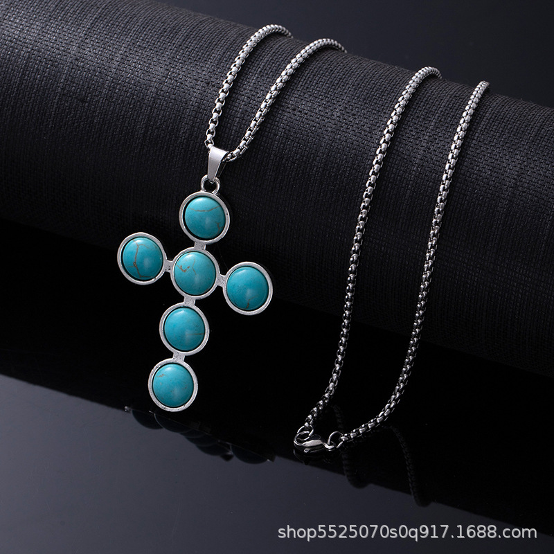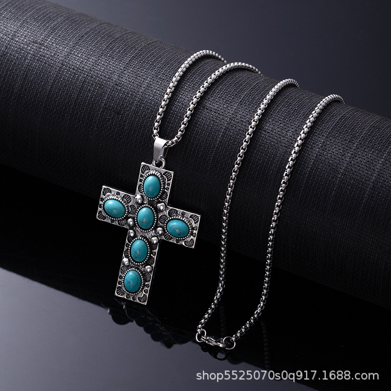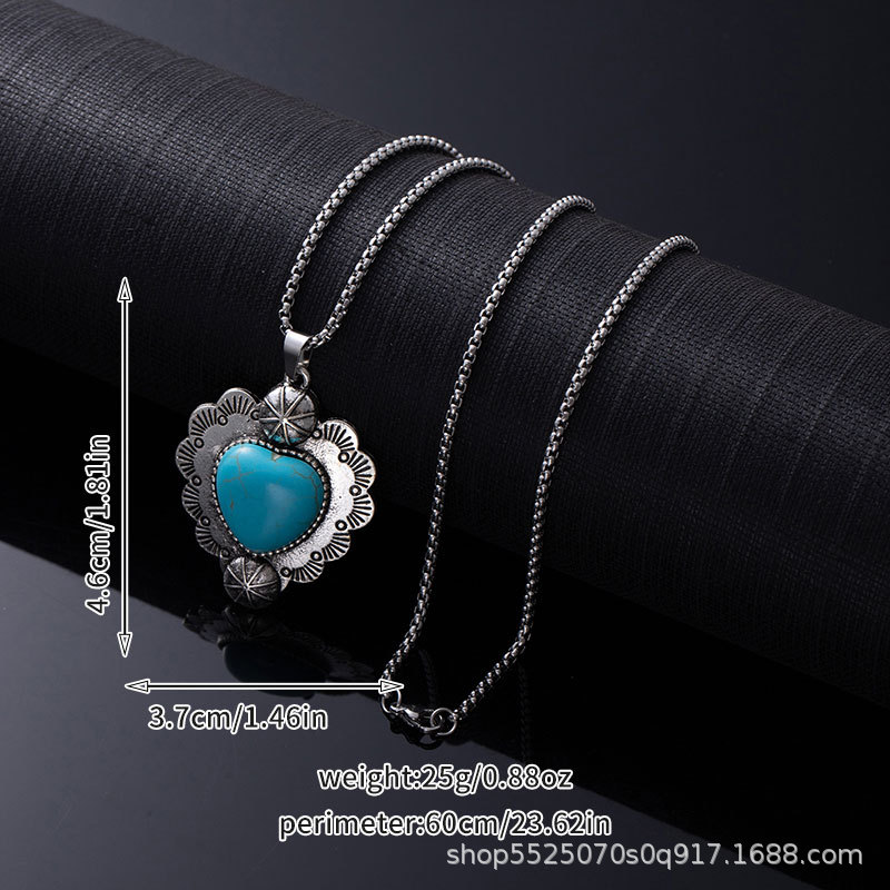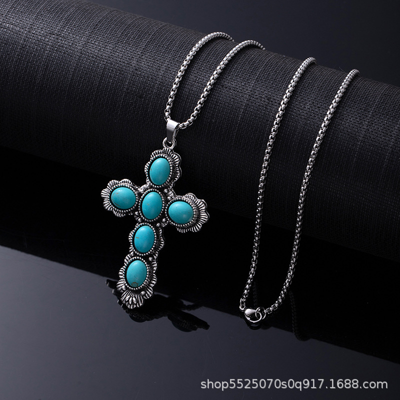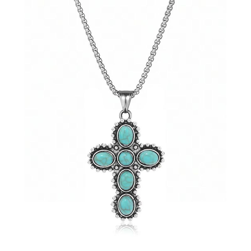 欧美跨境热卖镶绿松石项链女复古百搭波西米亚风时尚几何项链饰品批发货源