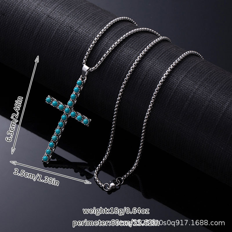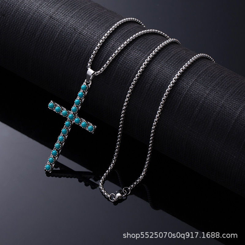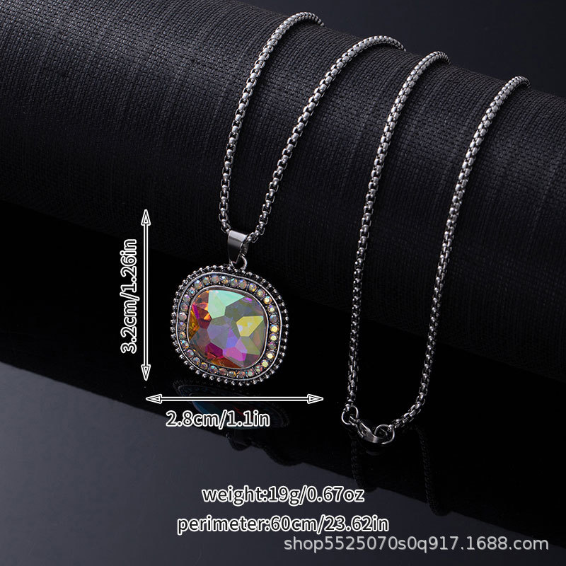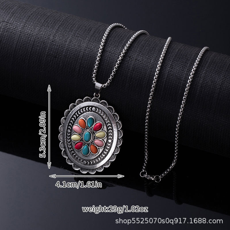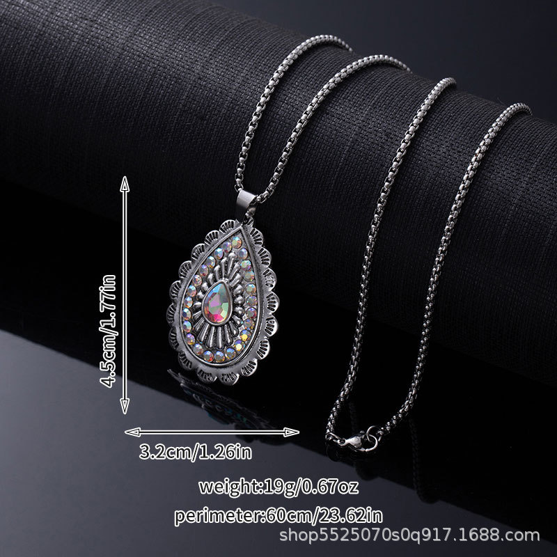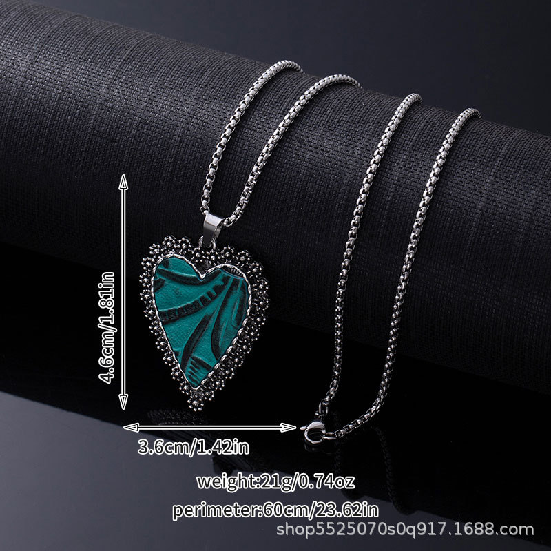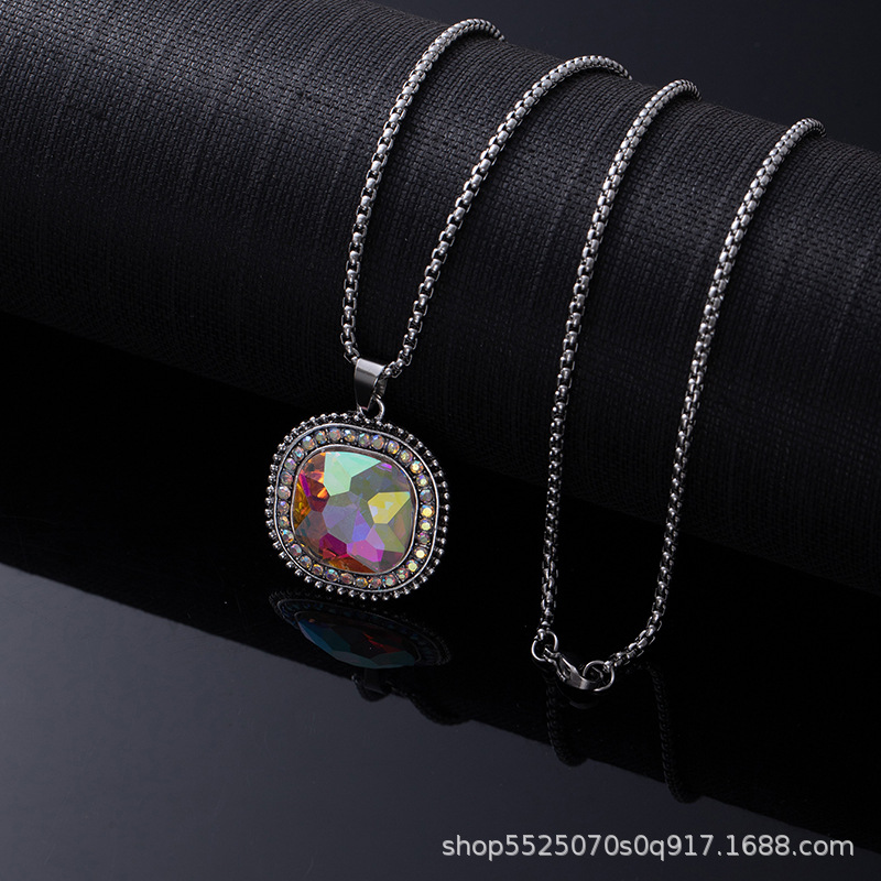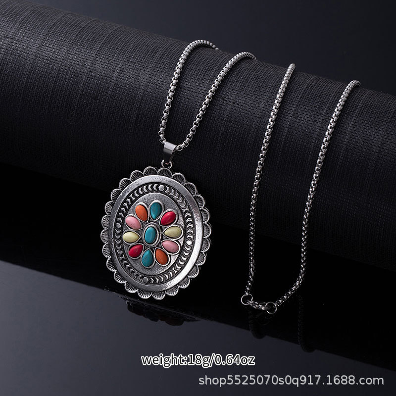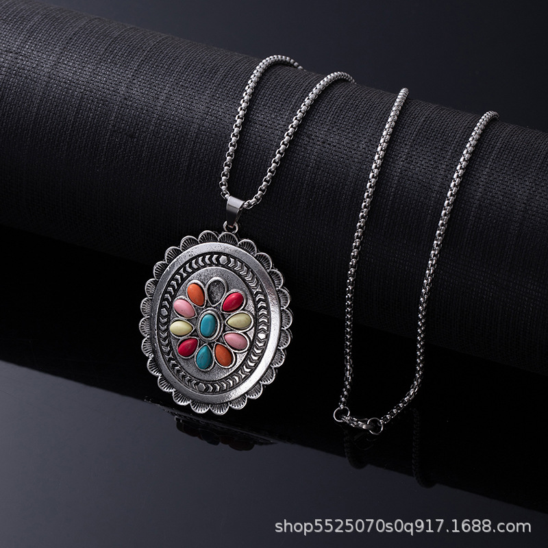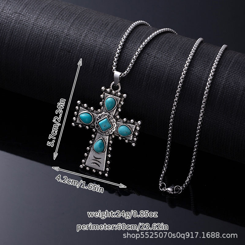 欧美跨境热卖镶绿松石项链女复古百搭波西米亚风时尚几何项链饰品批发货源