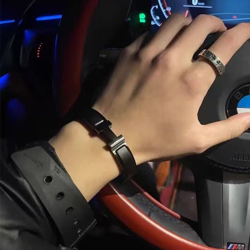 Hermes H Bracelet High Version Black Warrior Enamel Bracelet Men's Pure Black Bracelet Frosted Buckle Couple Bracelet