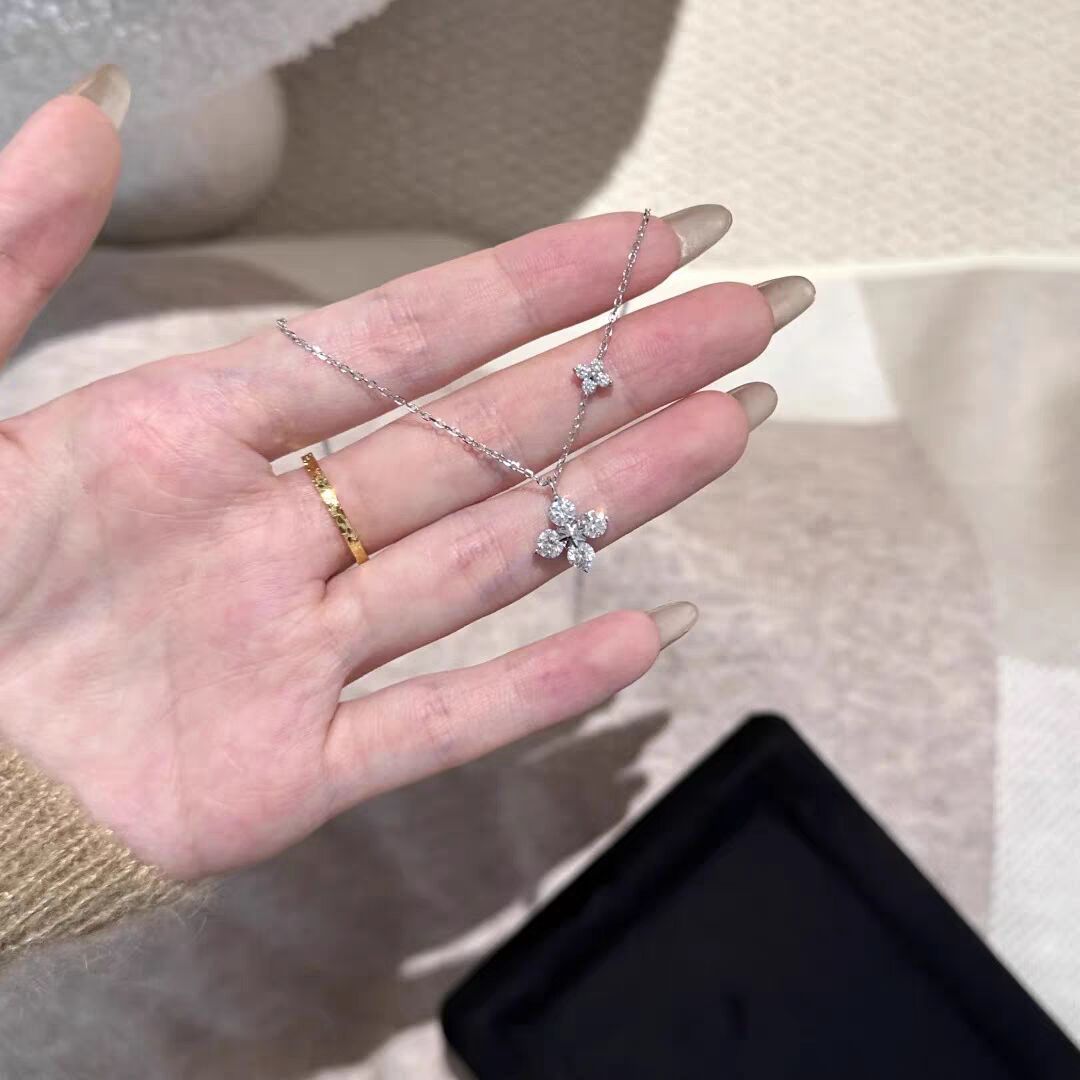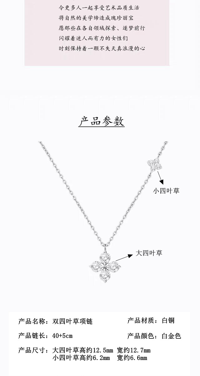 Summer New Product Twin Four-Leaf Clover Necklace Women's Light Luxury Niche Design Diamond Accessories Clavicle Chain Drop Shipping