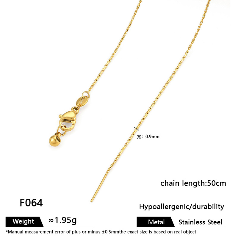 Color: F064-gold vertical round chain, width 0.9mm, 50cm necklace