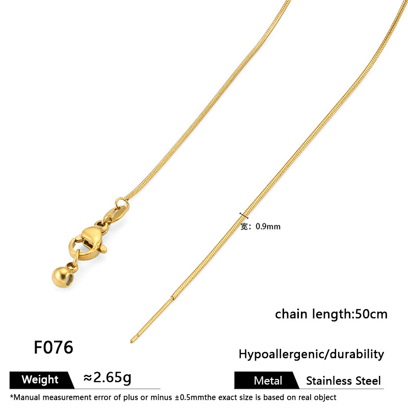 Color: F076-gold round snake chain width 0.9mm, 50cm necklace