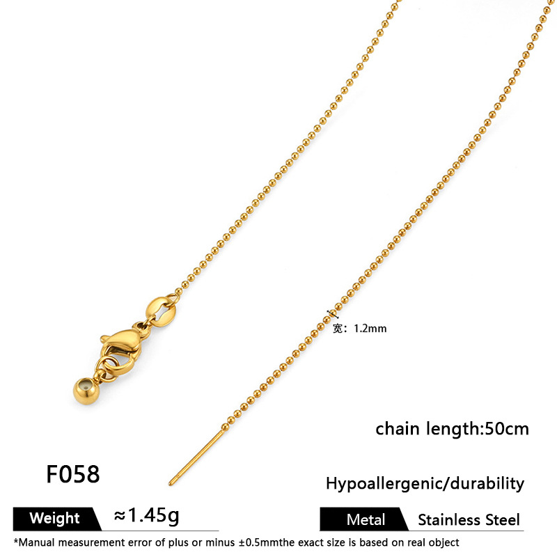 Color: F058-gold glass bead chain, width 1.2mm, 50cm necklace