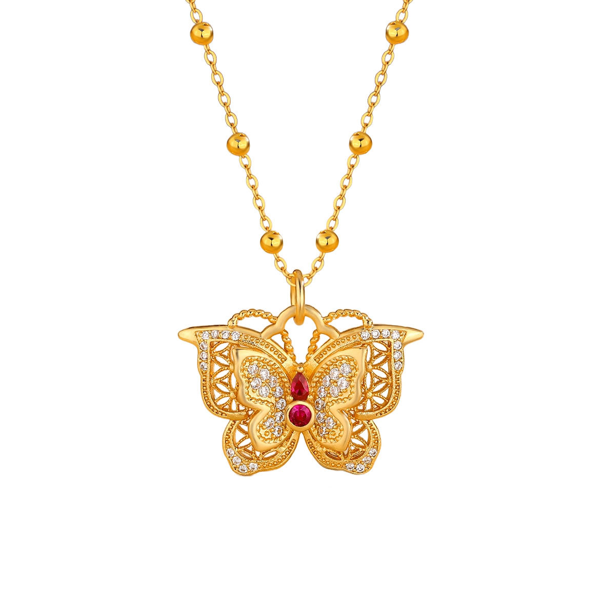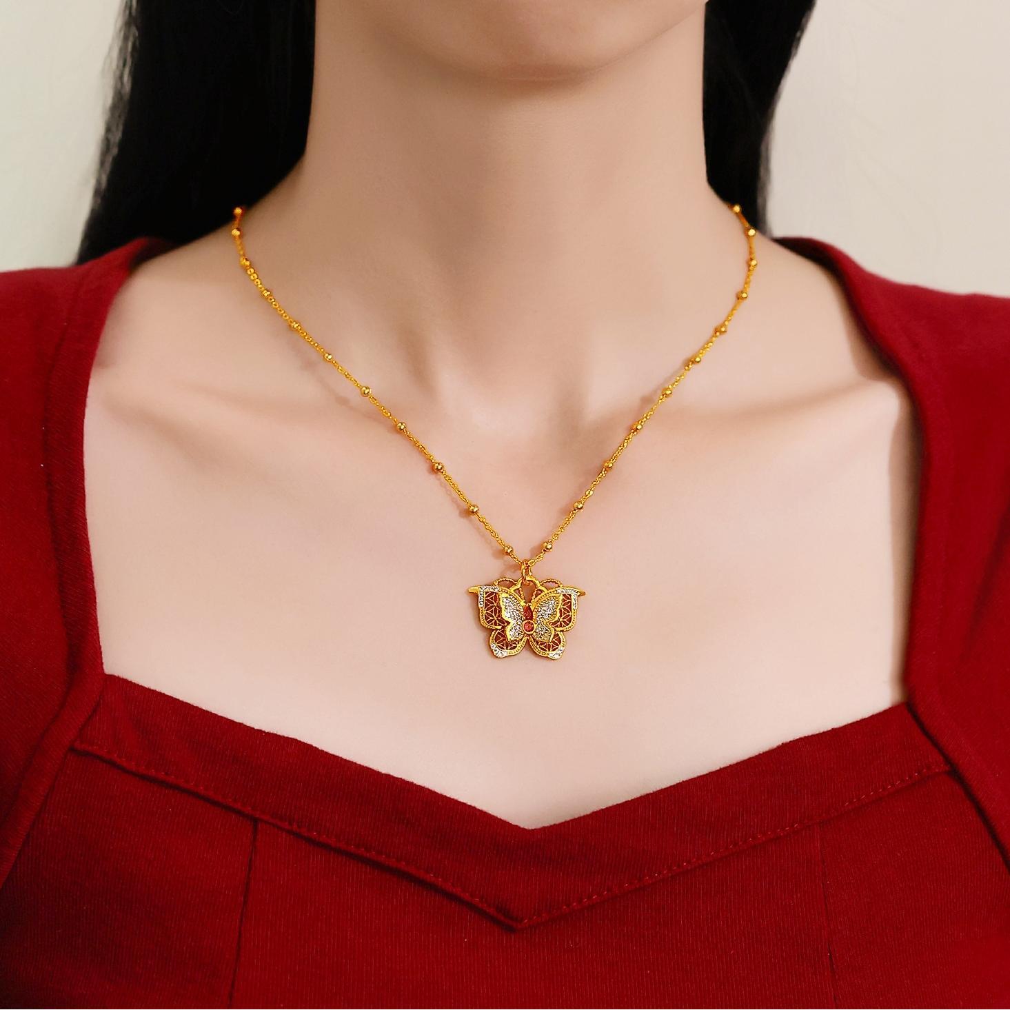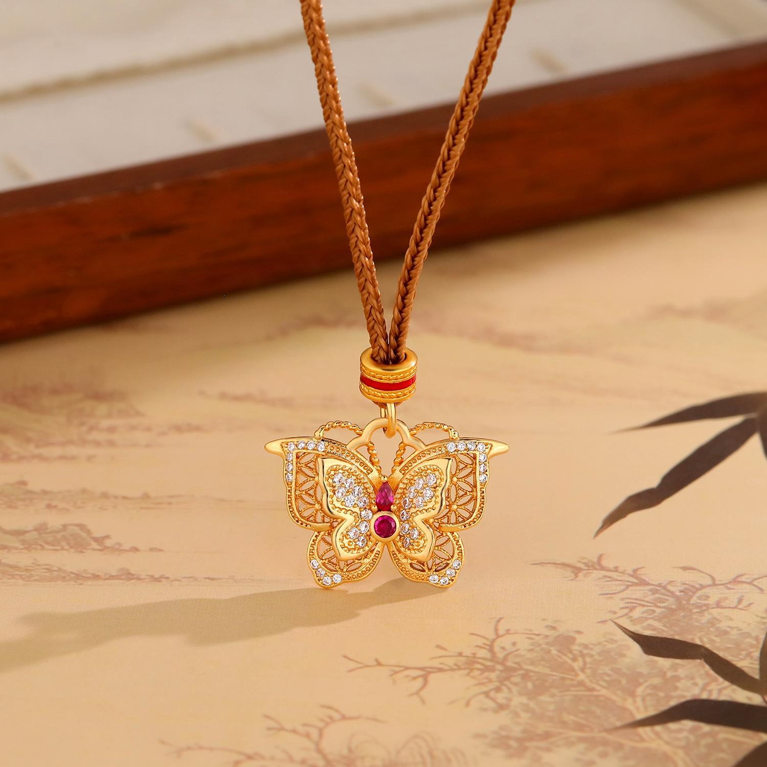 Pointed Diamond Exquisite Flower Butterfly Necklace for Women, New Chinese Style Hollow Design Filigree Double-Layer Butterfly Clavicle Chain as a Gift for Your Girlfriend