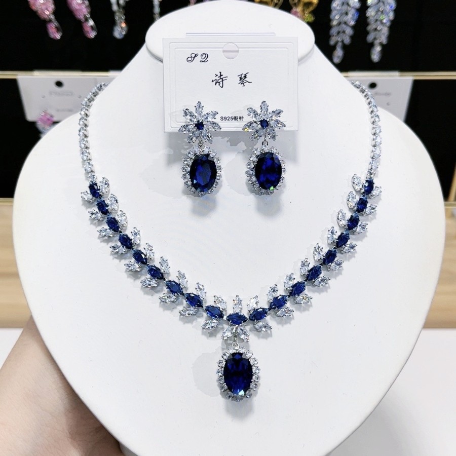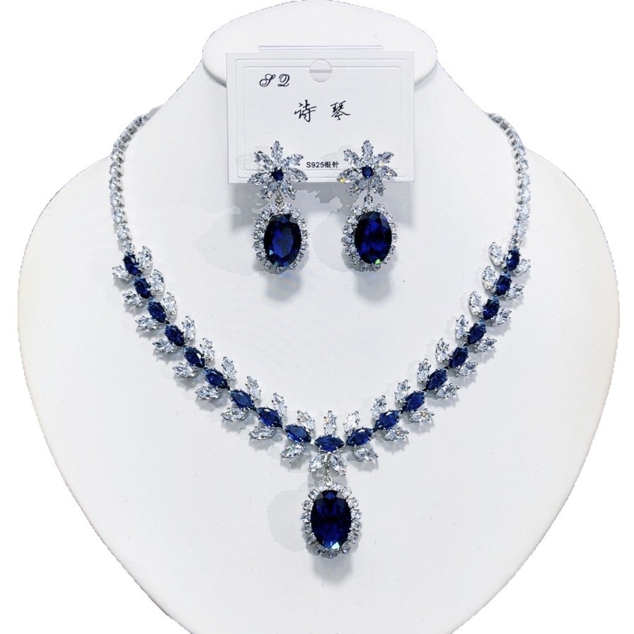 Fashionable Light Luxury High-End Zircon Luxury Necklace Earrings High-End Three-Row Pigeon Egg Wheat Ear Necklace Versatile Necklace