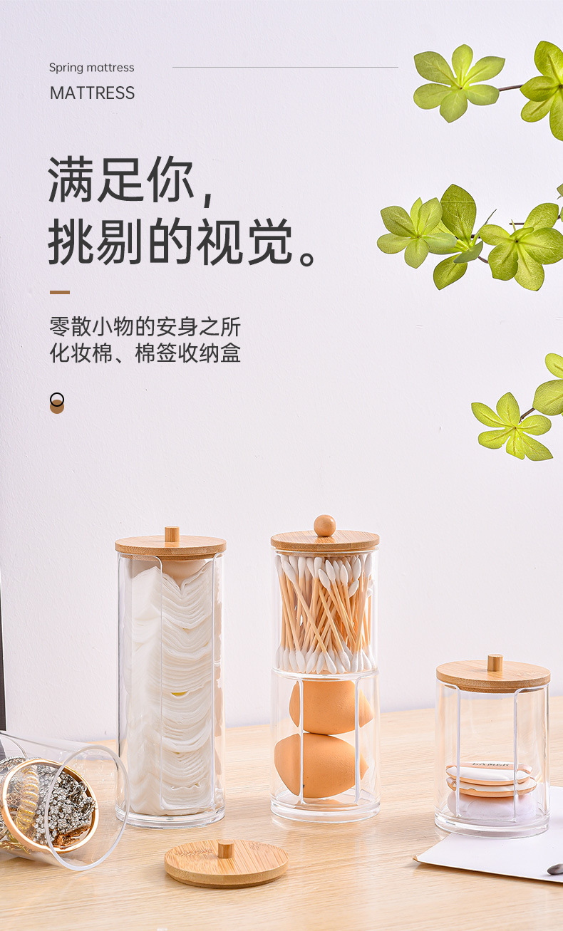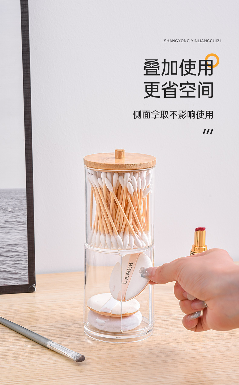 Color: Medium cylindrical bamboo lid cotton swab box