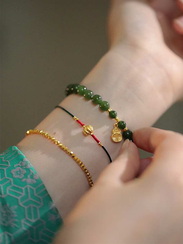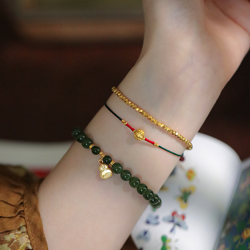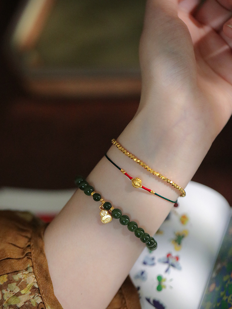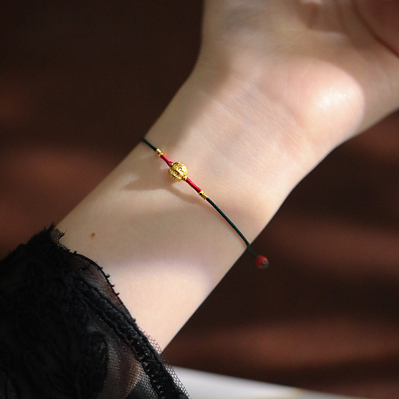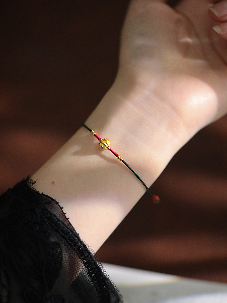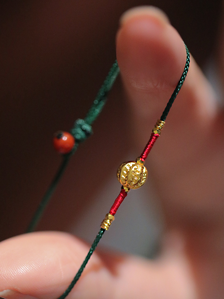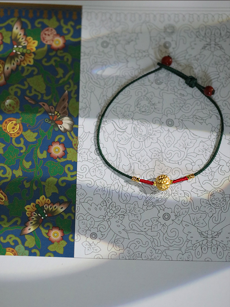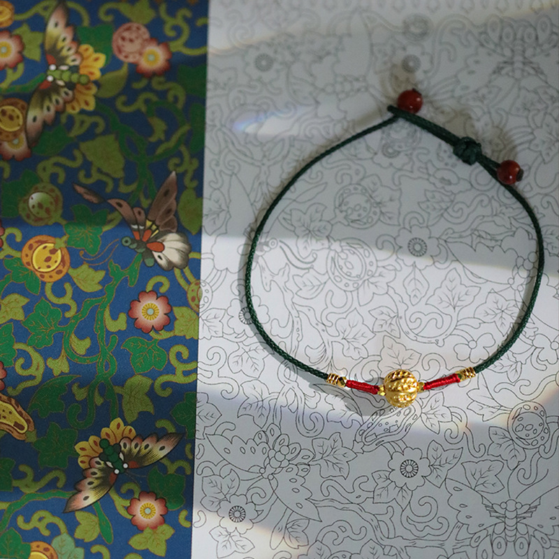 『Family Blessings』New Chinese Style Original Design Braided Golden Walnut Bracelet Adjustable