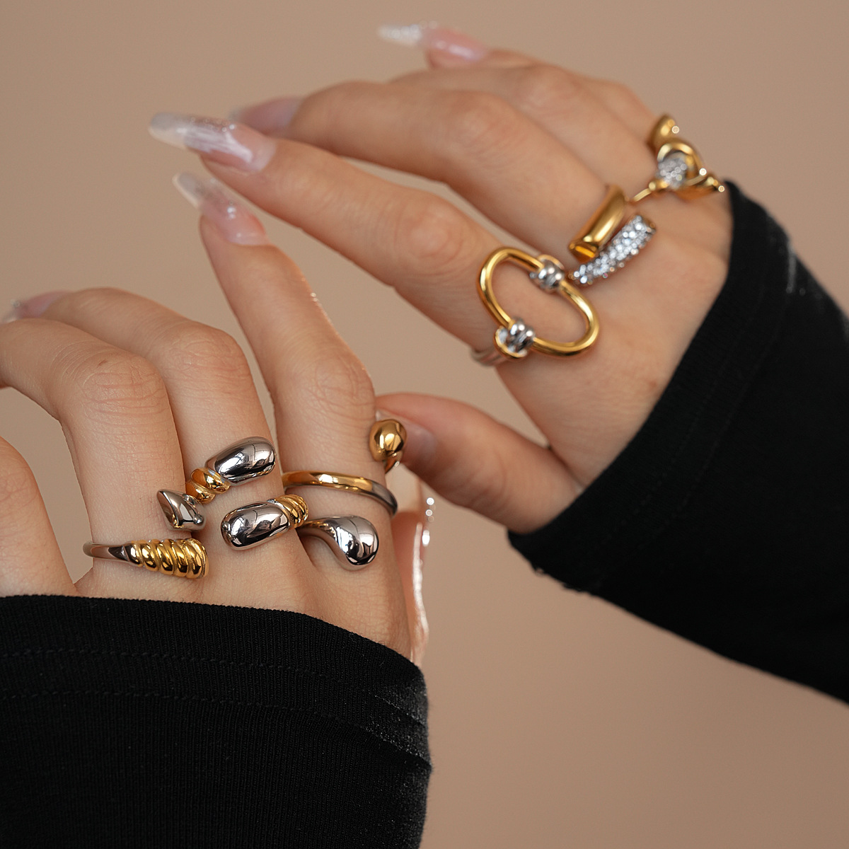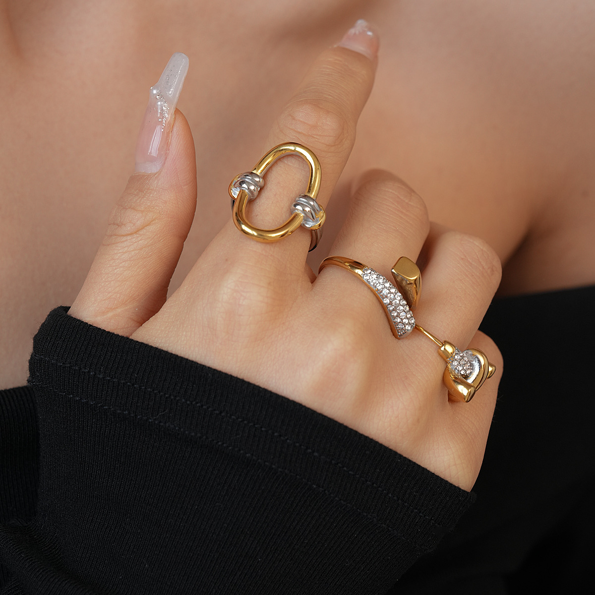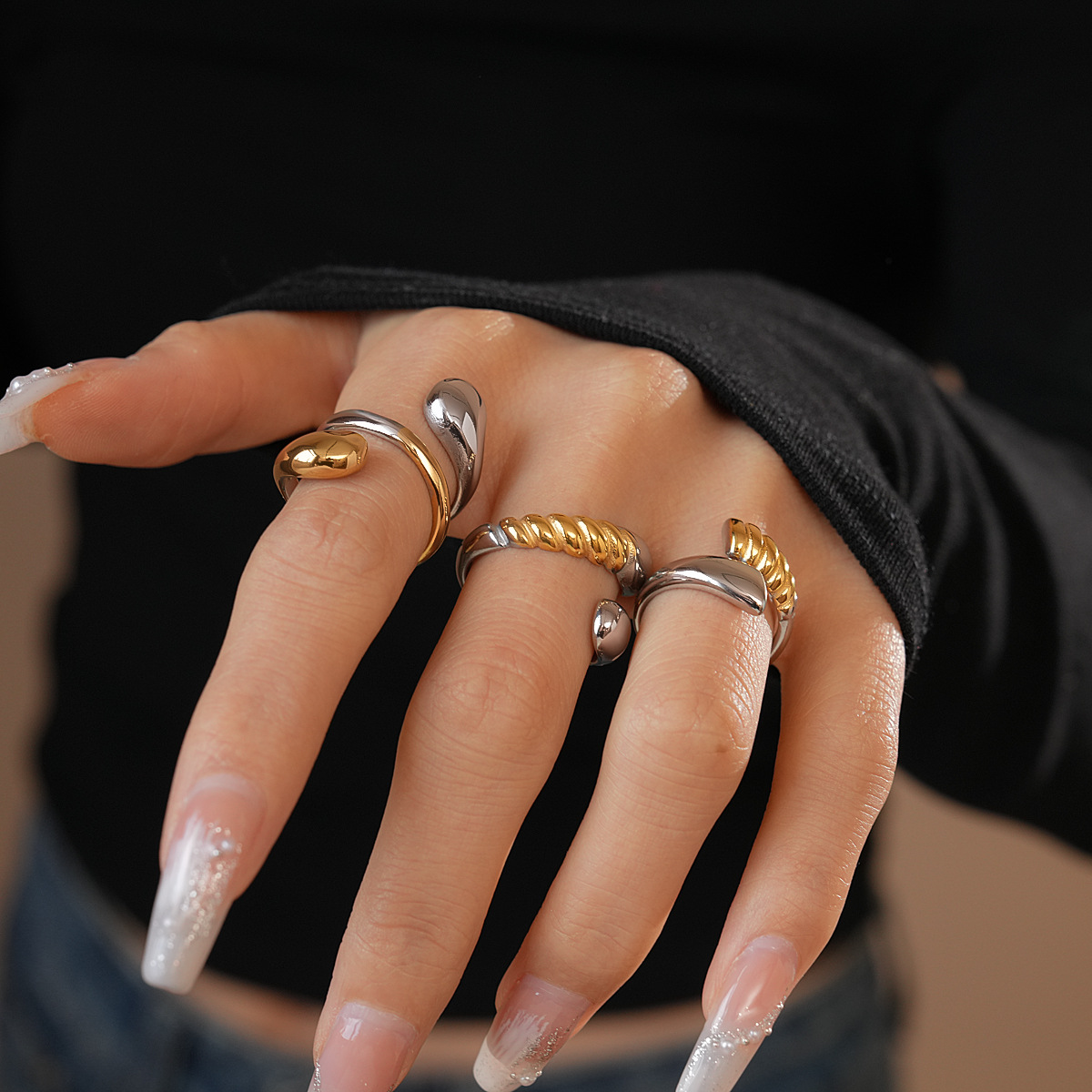 Stainless Steel Contrasting Color Snake-Shaped Ring, Unique Design, Index Finger Ring, Niche Fashion Trend Jewelry Wholesale for Women