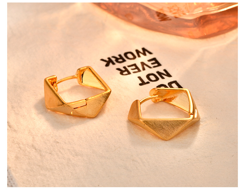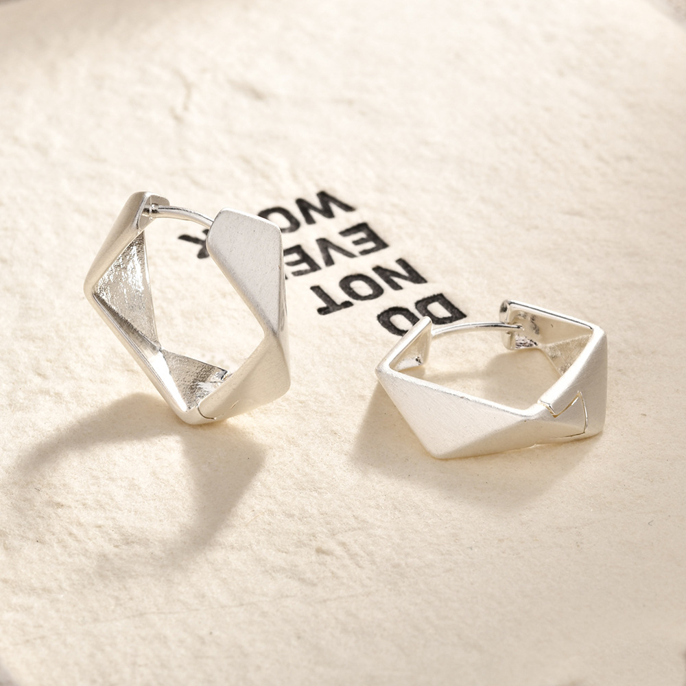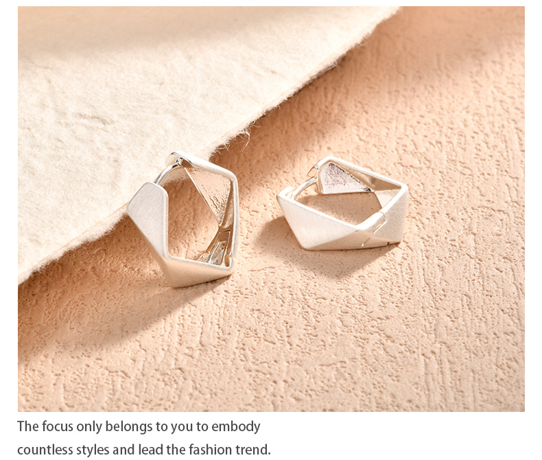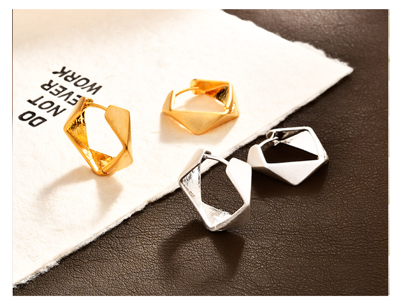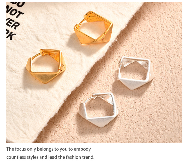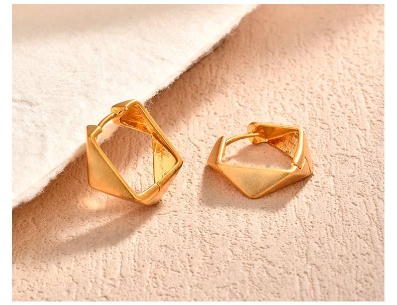 Gold and Silver Brushed Stereo Rhombus Earrings Niche Design Simple Elegant Versatile Fashion High-End Earrings Earrings