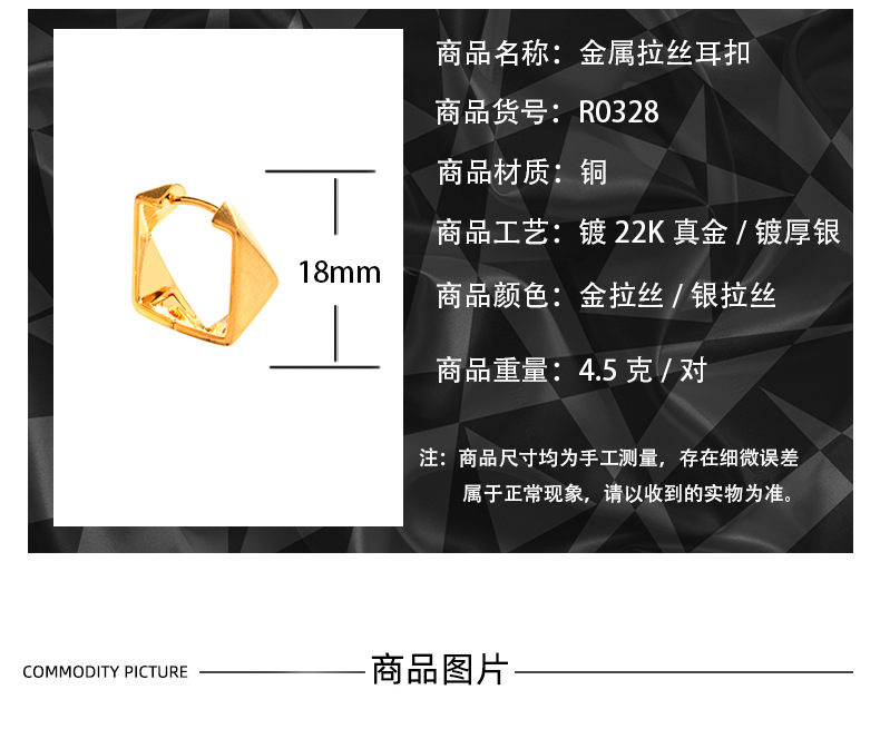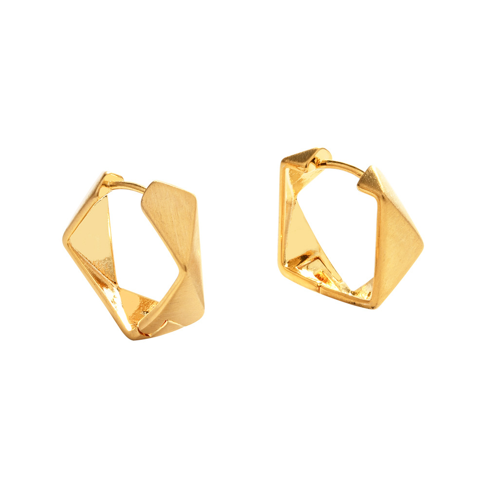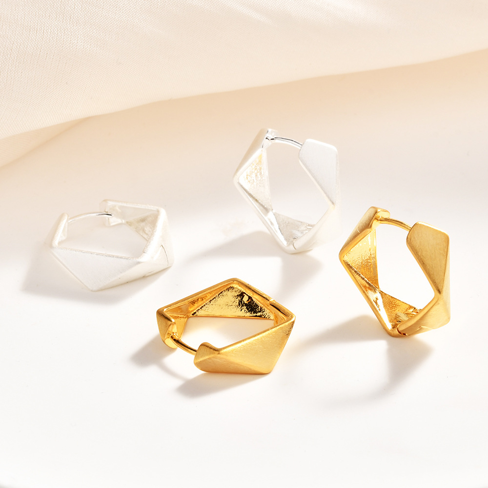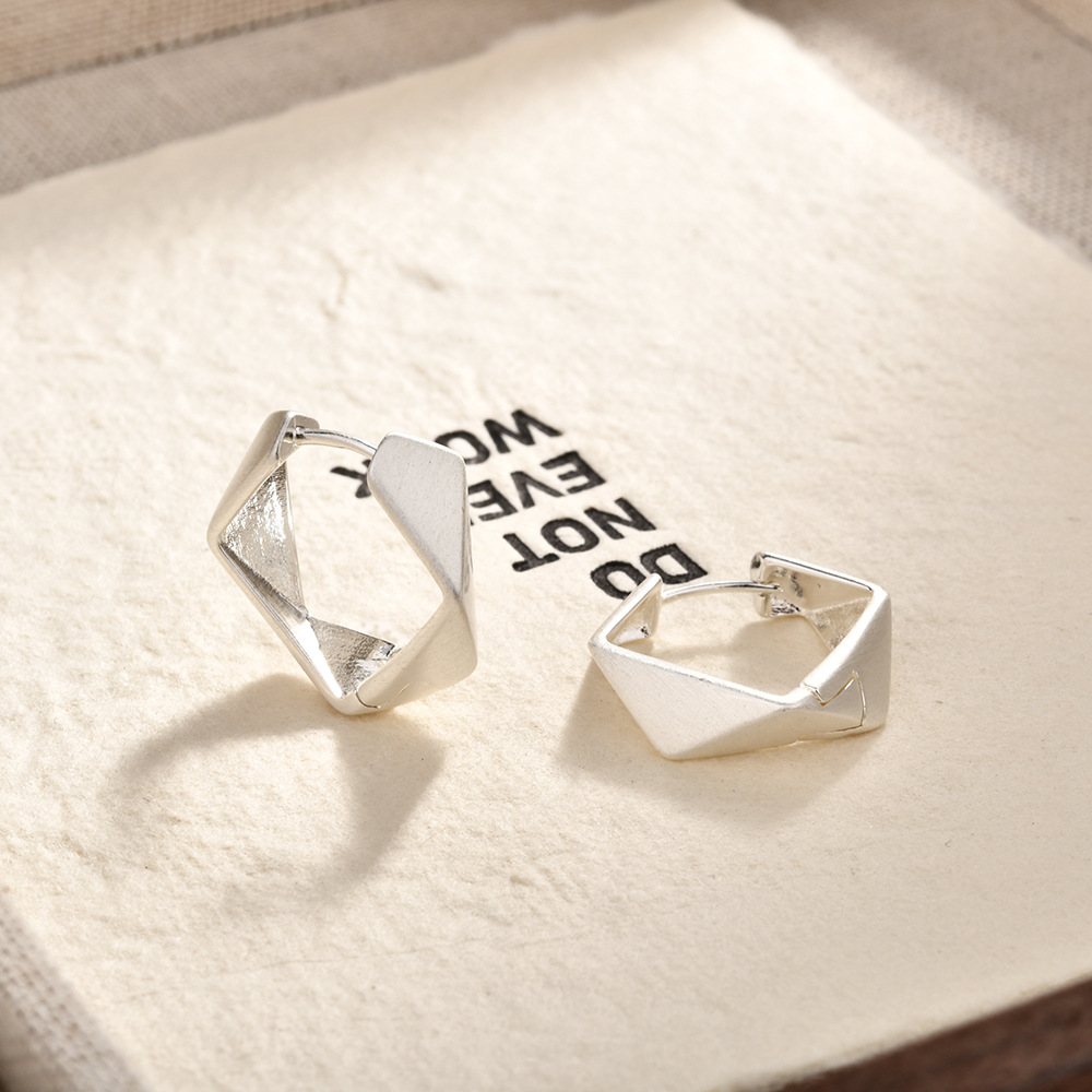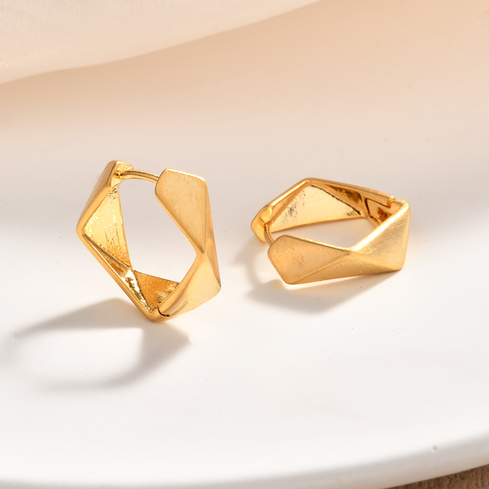 Gold and Silver Brushed Stereo Rhombus Earrings Niche Design Simple Elegant Versatile Fashion High-End Earrings Earrings