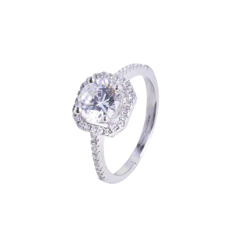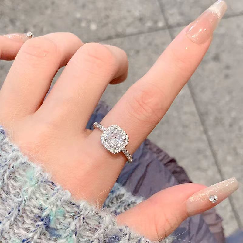 Light Luxury Style New Square Zirconium Full Diamond Flash Open Ring Women's Korean Style Fashionable Design Adjustable Index Finger Ring