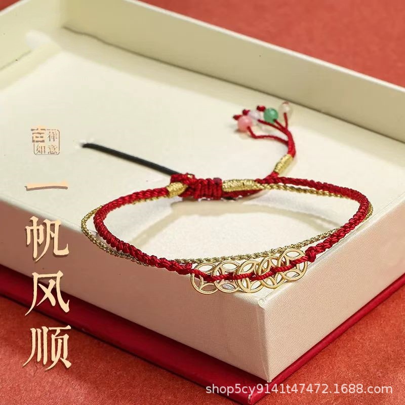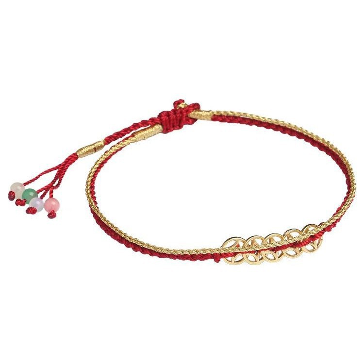 New Five Emperors Money Anklet for Women, Year of the Snake, Zodiac Year, Red Rope Anklet, Women's Fortune-Enhancing Braided Rope, Men's Anklet