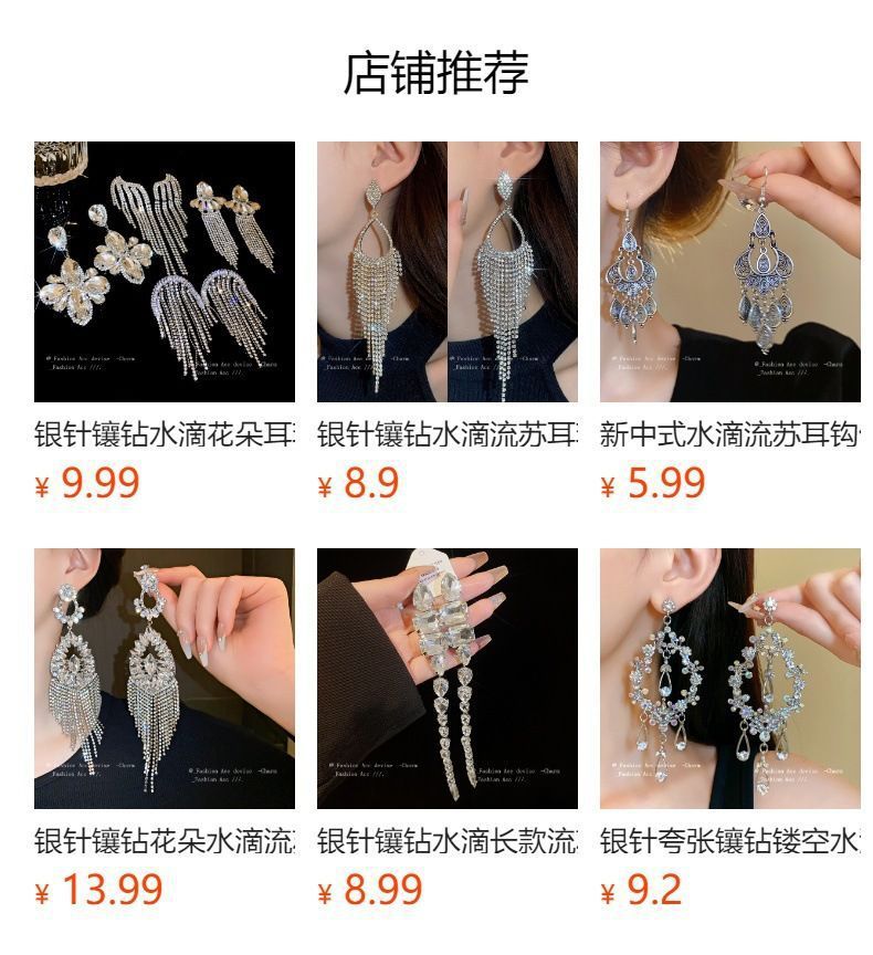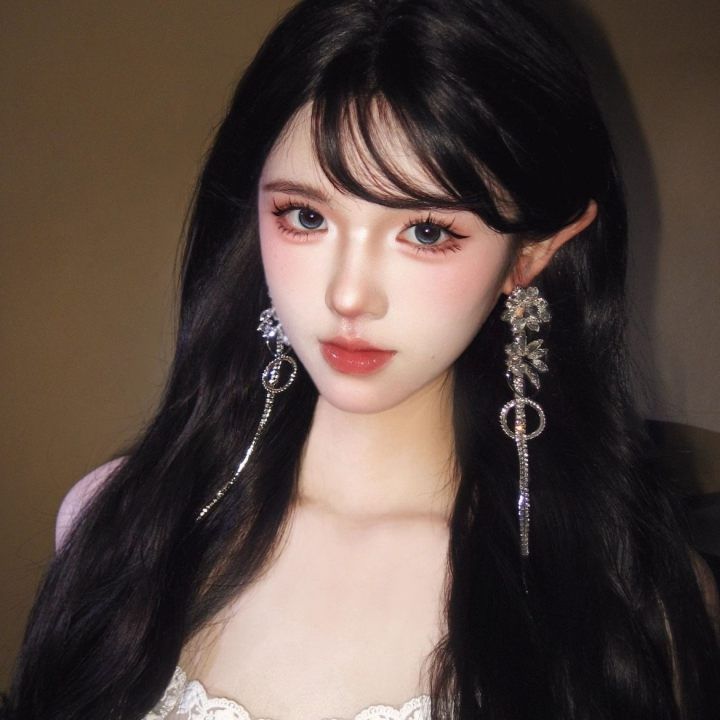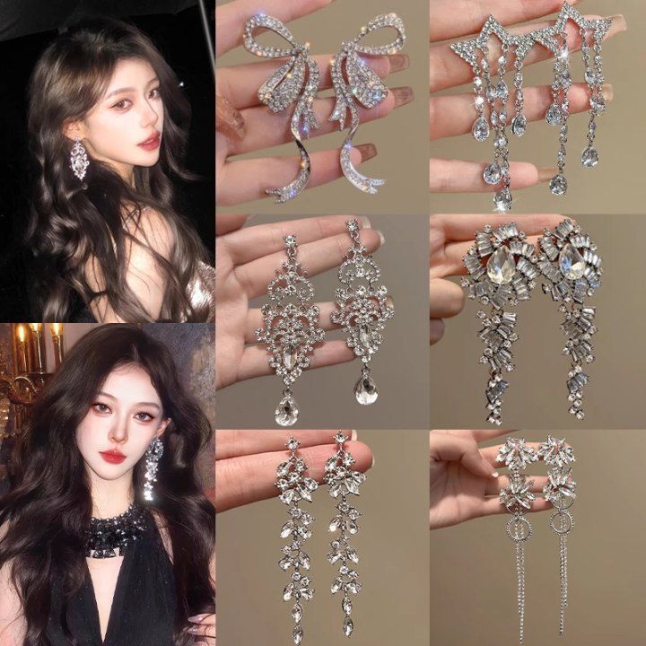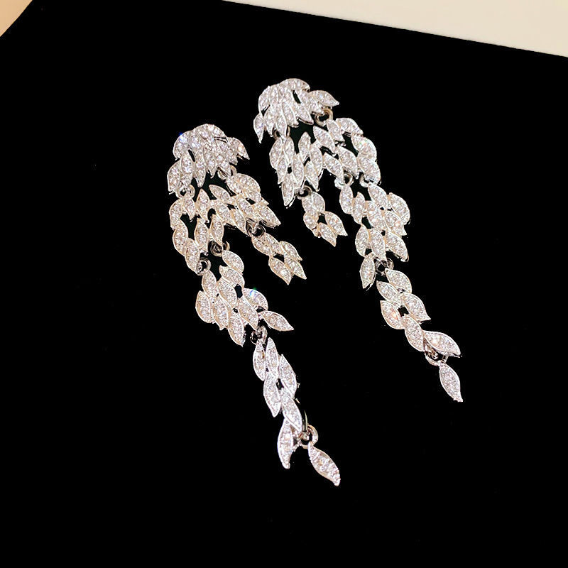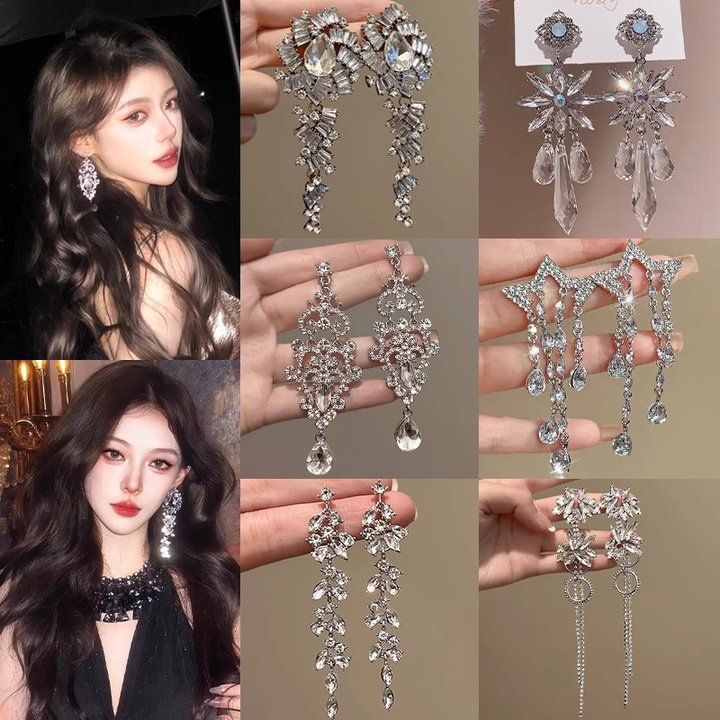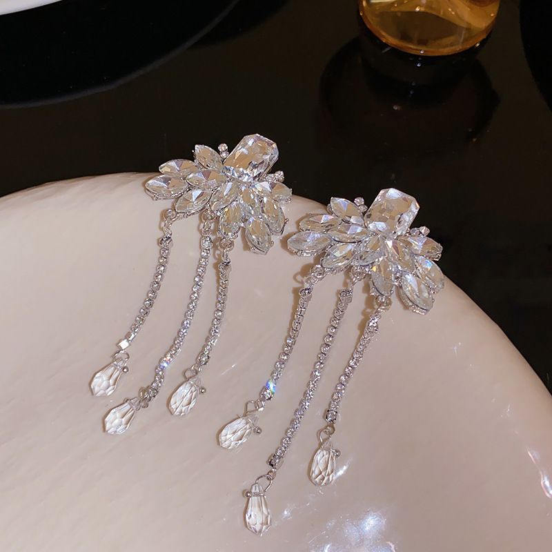 Silver Needle Inlaid Diamond Flower Water Drop Tassel Earrings European and American Exaggerated 2025 New Earrings Accessible Luxury Earrings for Women