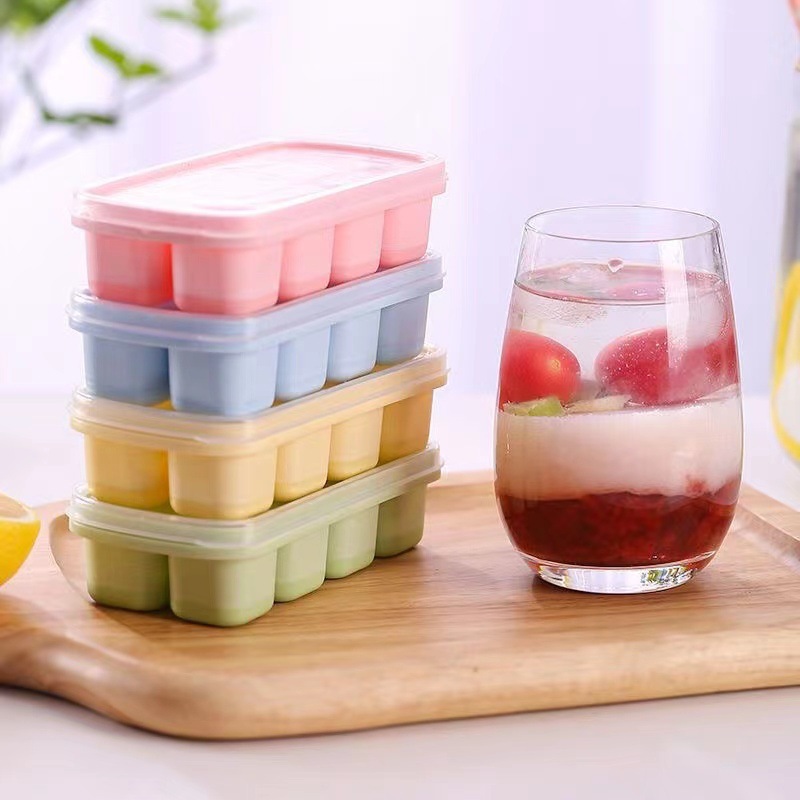 Frozen Ice Cube Artifact with Lid Refrigerator Ice Box Internet Celebrity 8-Grids Soft Bottom Ice Tray