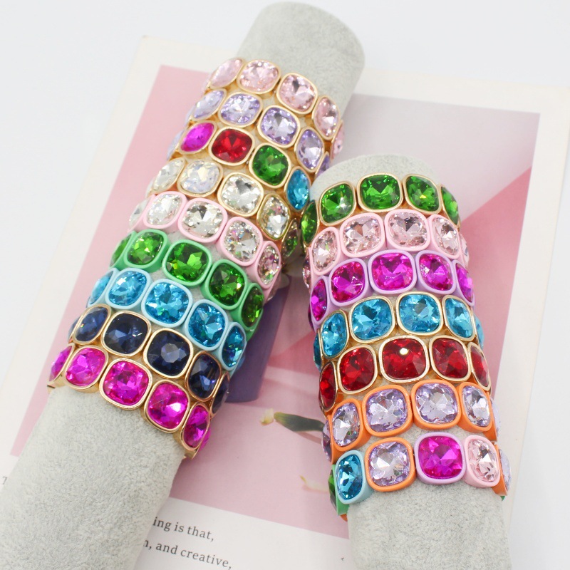 New European and American Hot-Selling Enamel Bracelet Colorful Rubber Paint Gemstone Flower Crystal Plated Colorful DIY Summer Style Exaggerated Bracelet