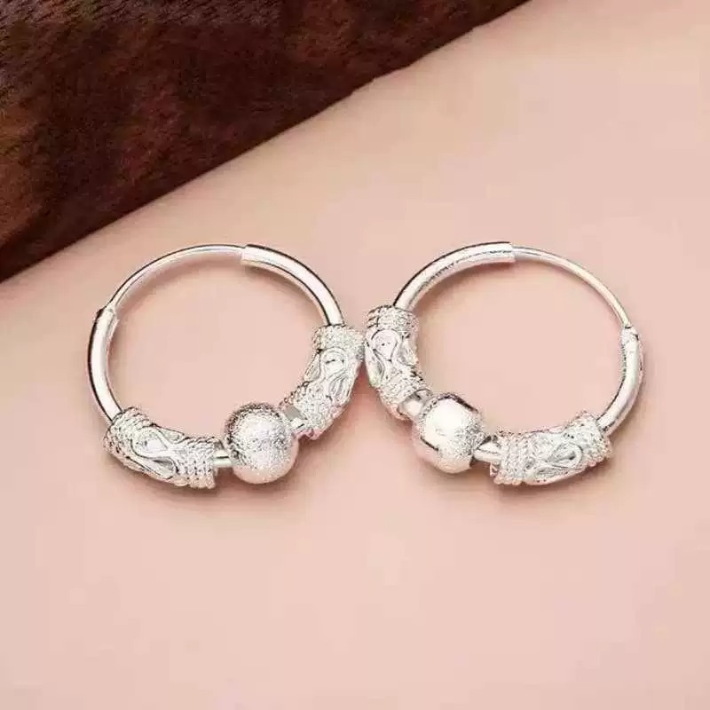 Color: F294-a (original thick silver-plated transfer bead earrings) 1 pair