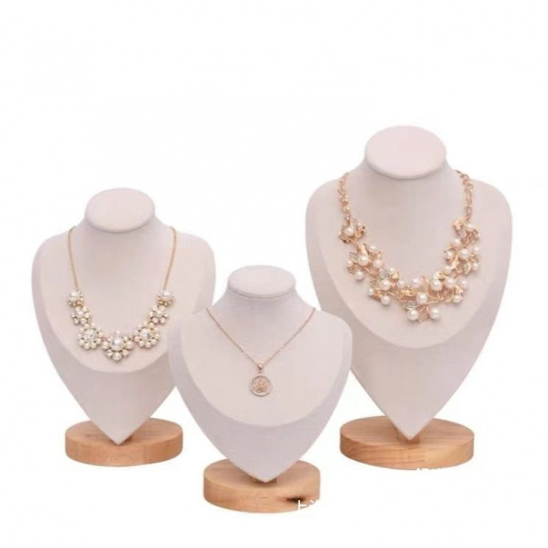 High-End Solid Wood Heart-Shaped Necklace Display Stand Neck Model Portrait Neck Jewelry Stand Jewelry Photo Props