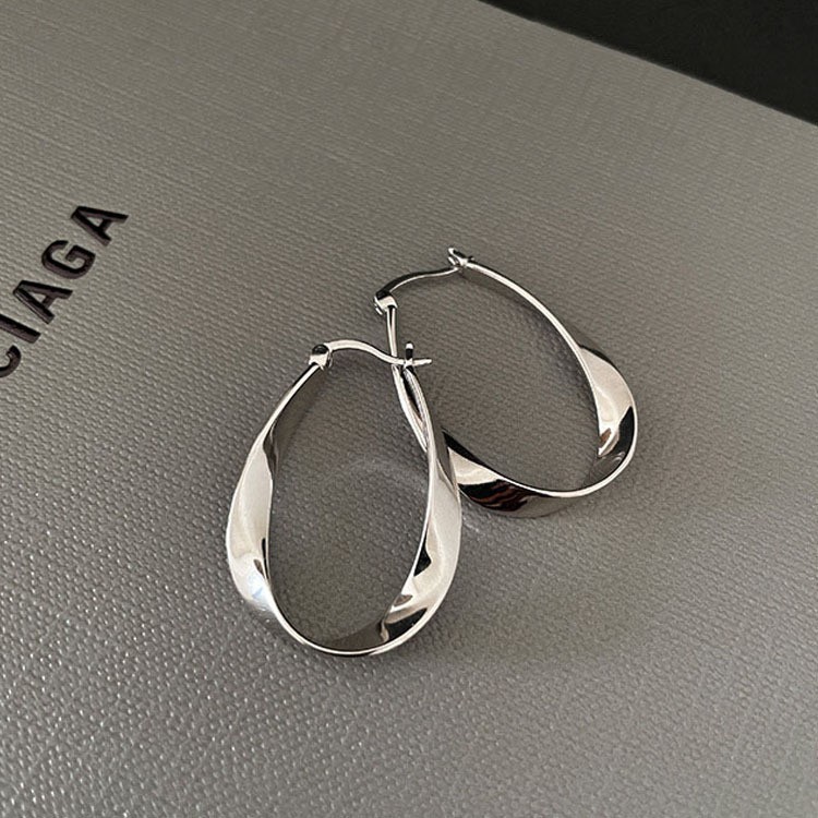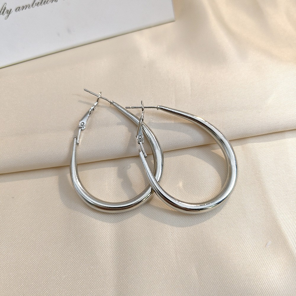 Cross-Border Pendants Are Hot Sellers in European and American Style, Exaggerated Glossy Silver Hoop Earrings, Simple and Versatile Earrings, Plain Hoop Earrings
