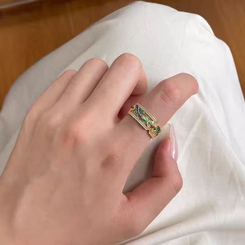 Personalized White Blue Enamel Oil Drop Butterfly Open Ring Female Niche High-End Accessible Luxury Versatile Couple Ring