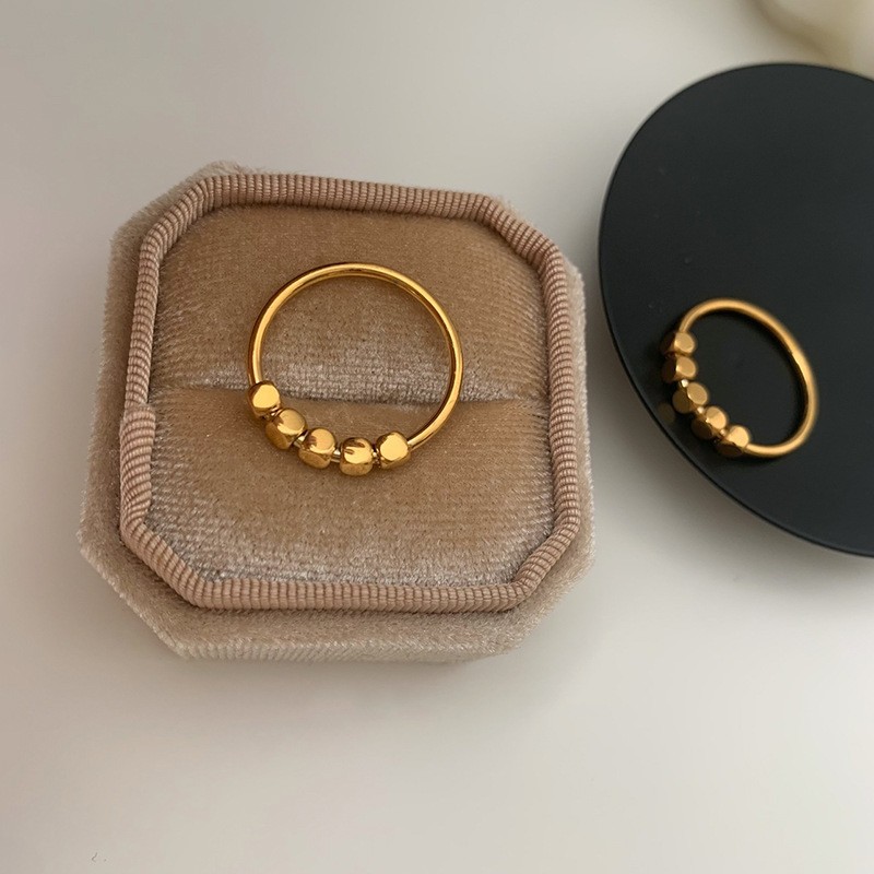 Silin Non-Fading Titanium Steel Fortune-Turning Rotatable Unique Niche Design Ring Women's Gold Beads Exquisite Accessible Luxury