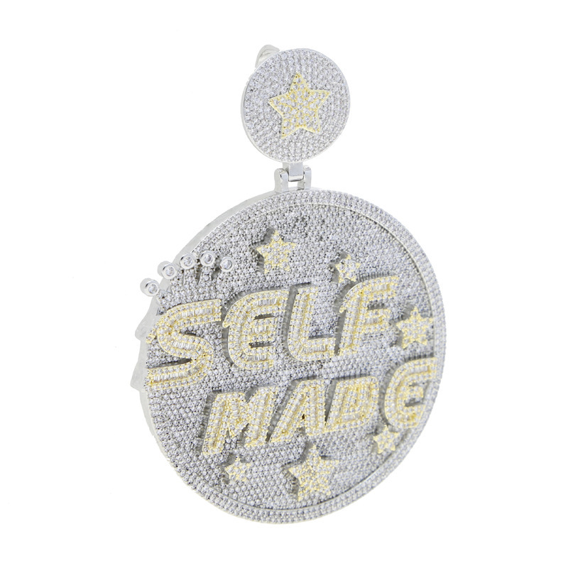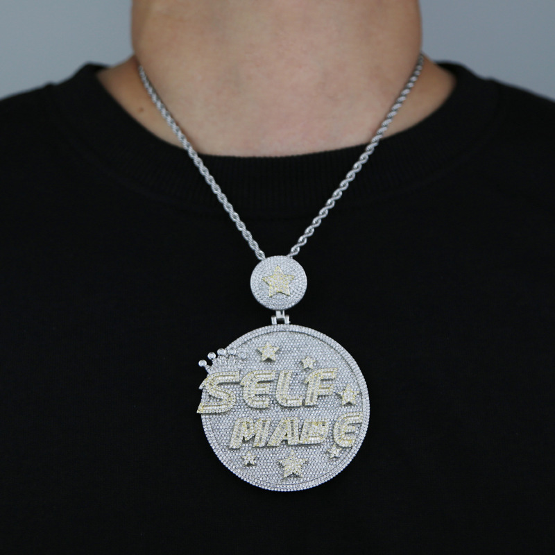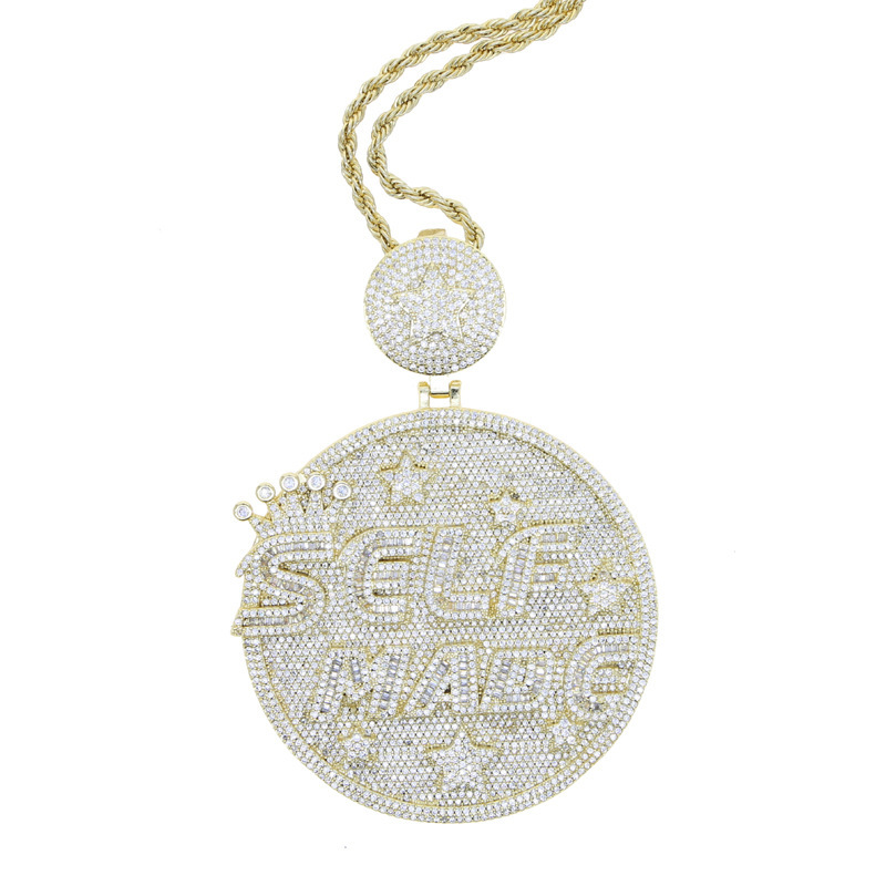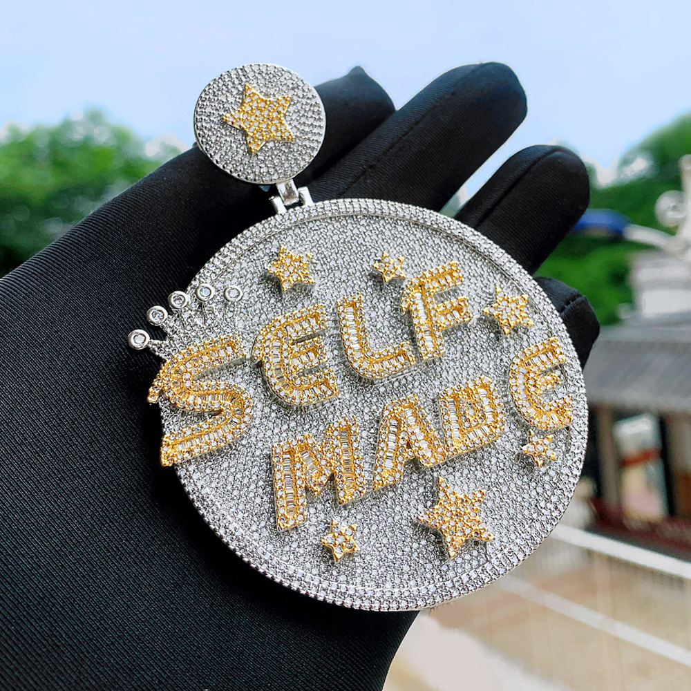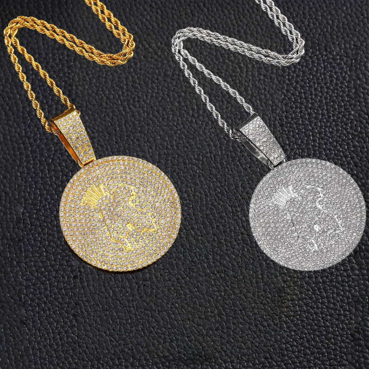 Amazon's Three Alloy Selfmade Letter Round Pendant European and American Trendy Zircon-Encrusted Men's Necklaces Wholesale