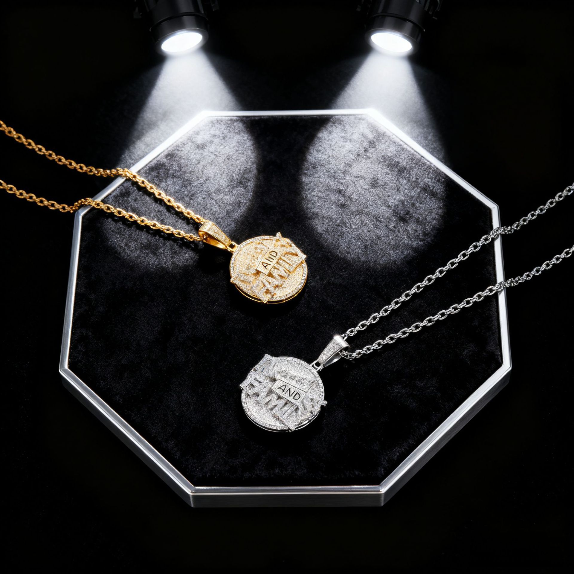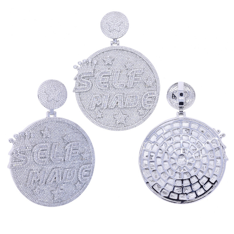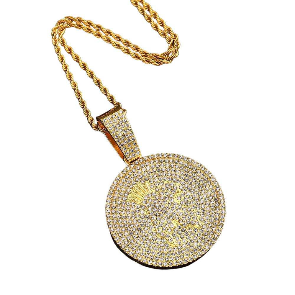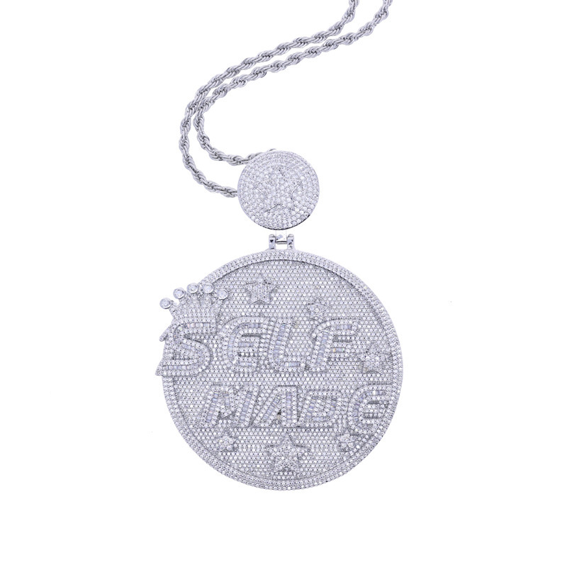 Amazon's Three Alloy Selfmade Letter Round Pendant European and American Trendy Zircon-Encrusted Men's Necklaces Wholesale