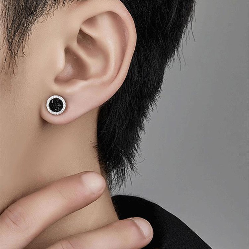 Full Diamond Crystal Cluster Round Zircon Stud Earrings for Men with Unique Design, Personalized and Versatile Accessories for Women and Men