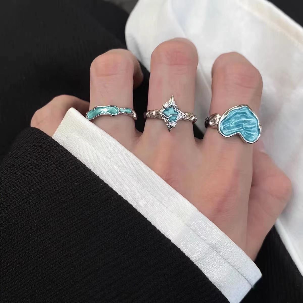 Enamel Starburst Sweet Cool Style Ring Trendy Cool Niche Design Minimalist Open Adjustable Couple Ring for Women