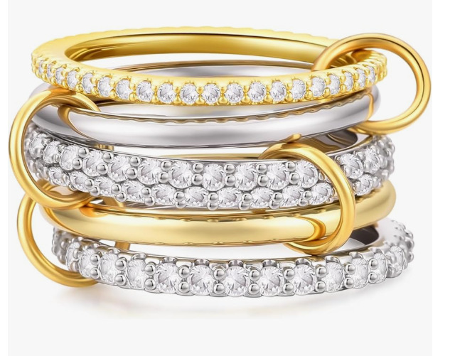 Cross-Border Hot-Selling New Product Stacked Cubic Zirconia Ring 18K Gold Copper Thick High-Gloss Gold and Silver Double Ring
