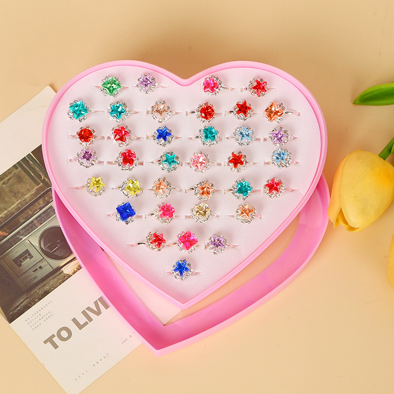 Children's Ring Little Princess Cute Girls Gemstone Cartoon Jewelry Cute Opening Adjustable Girls Plastic Ring