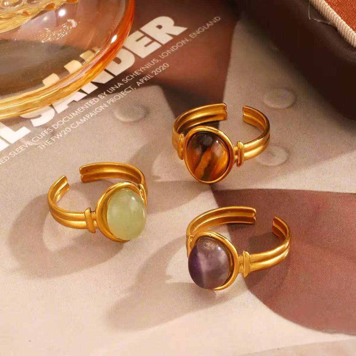 European and American Light Luxury Stainless Steel Open Ring Niche Retro Design Gold-Plated Titanium Steel Non-Fading Ring