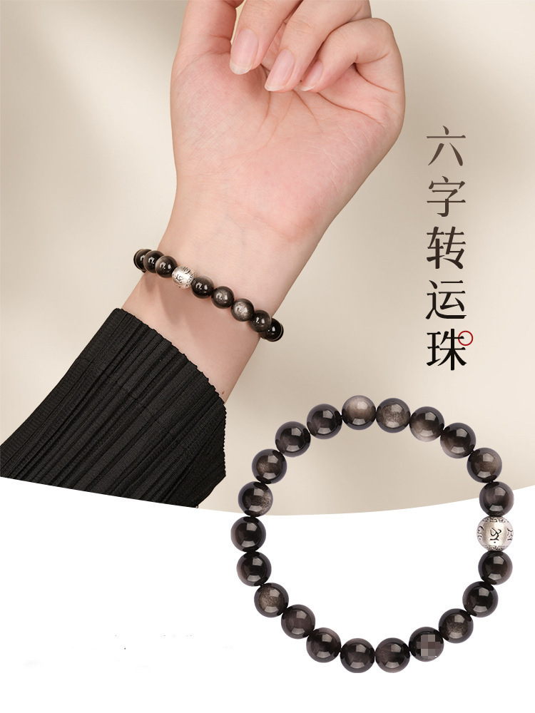 Color: Natural silver obsidian [six-character transfer beads]-8mm